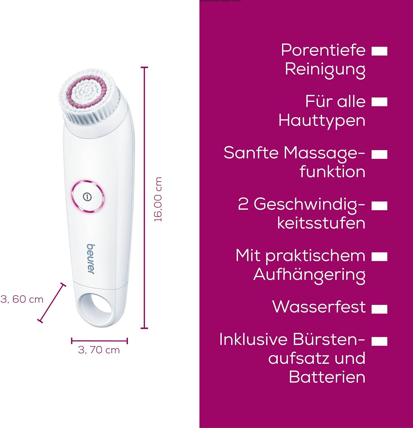 Beurer FC 45 Gesichtsbürste, Tiefenreinigung für spürbar weichere Haut, 2-stufige Rotation für jeden Hauttyp, wasserfest, Weiß FC 45 Gesichtsbürste ohne Nachkaufset | قیمت یورویی 15.49€