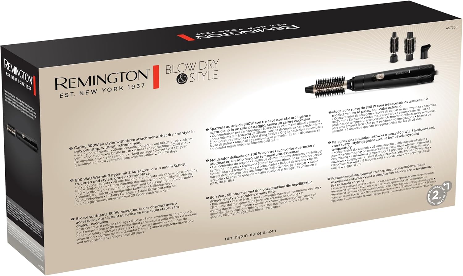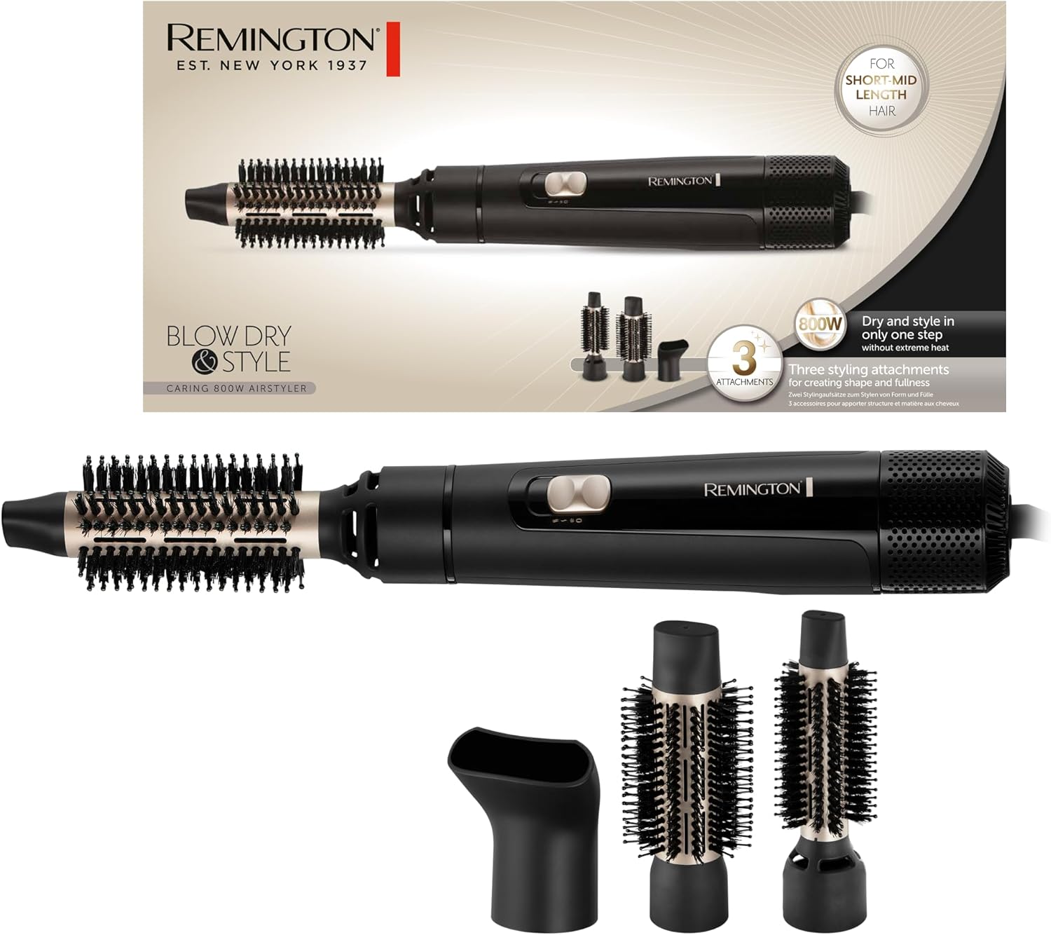 Remington Warmluftbürste [inkl. 3 Aufsätze: 25mm & 38mm Rundbürste, Stylingdüse] Blow Dry&Style (trocknet & stylt für Form & Fülle für kurzes/mittellanges Haar) 2 Heiz-&Gebläsestufen, Airstyler AS7300 | قیمت یورویی 29.99€