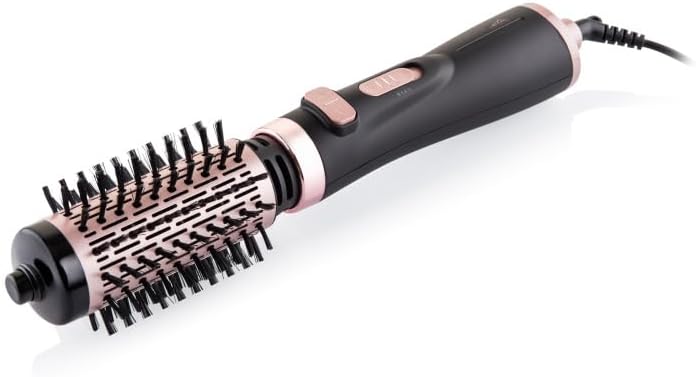 PERFEKTE STYLINGERGEBNISSE MIT 1000 WATT – Die leistungsstarke Heißluftbürste formt voluminöse Locken und glattes Haar im Handumdrehen. DREHFUNKTION & 2 BÜRSTENGRÖSSEN – Mit rotierender Funktion und zwei Bürsten (Ø 38 & 50 mm) ideal für verschiedene Haartypen & Stylings. 3 TEMPERATURSTUFEN & 2 GEBLÄSESTUFEN – Individuell einstellbar für feines, normales oder dickes Haar. Inklusive Kaltstufe für Styling-Finish. IONISIERUNGSFUNKTION GEGEN FRIZZ – Sorgt für glänzendes, geschmeidiges Haar, reduziert statische Aufladung & schützt vor Hitzeschäden. REISETAUGLICH & PRAKTISCH – Mit hitzebeständigem Etui, 1,8 m Drehkabel, Aufhängöse und kühler Spitze für sicheres Styling unterwegs. | قیمت یورویی : 44.99€