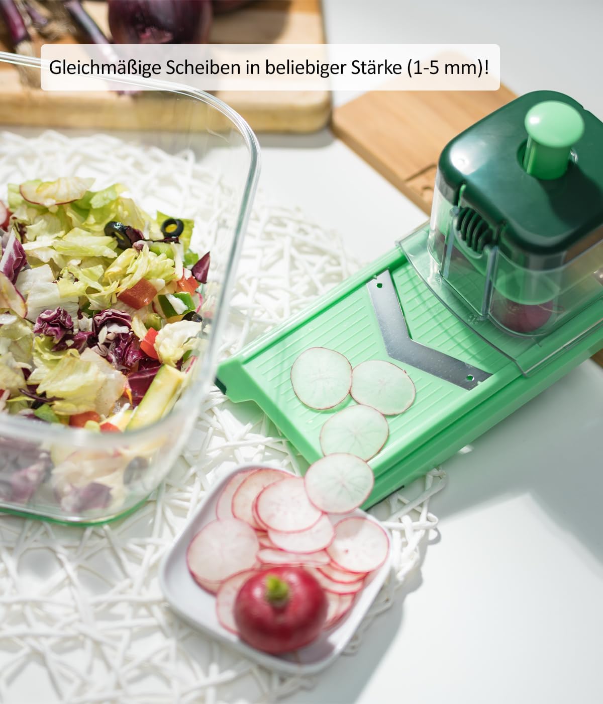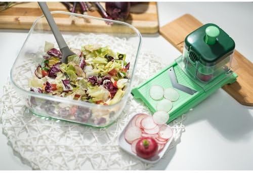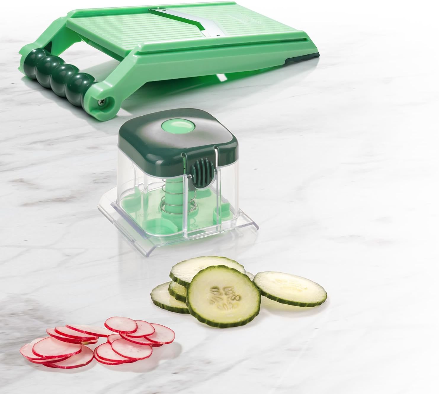 Genius Nicer Dicer Chef Speed Slicer verstellbarer Hobel inkl. Handy Hopper (2 Teile) - zum Schneiden von dünnen Scheiben (1-5mm) - Gurkenhobel Gemüsehobel Gemüseschneider, Grün | قیمت یورویی 26.95€