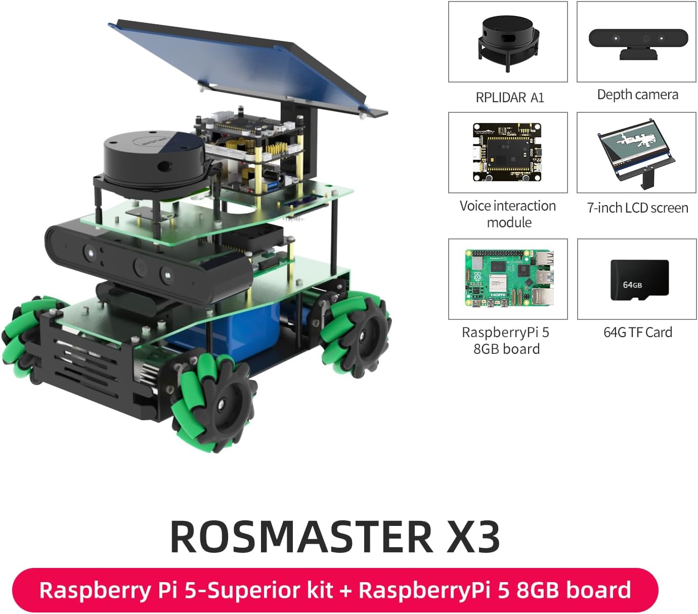 Program Robot Raspberry Pi 5 8GB RAM Ridar Depth Camera Voice Interaction Module 7-Inch LCD Display,3D Mapping Navigation AI Visual Recognition (Pi5 Superior Ver-with Pi5(8G)) Eu Pi5 Sup Ver-with Pi5(8g) | قیمت یورویی 815€