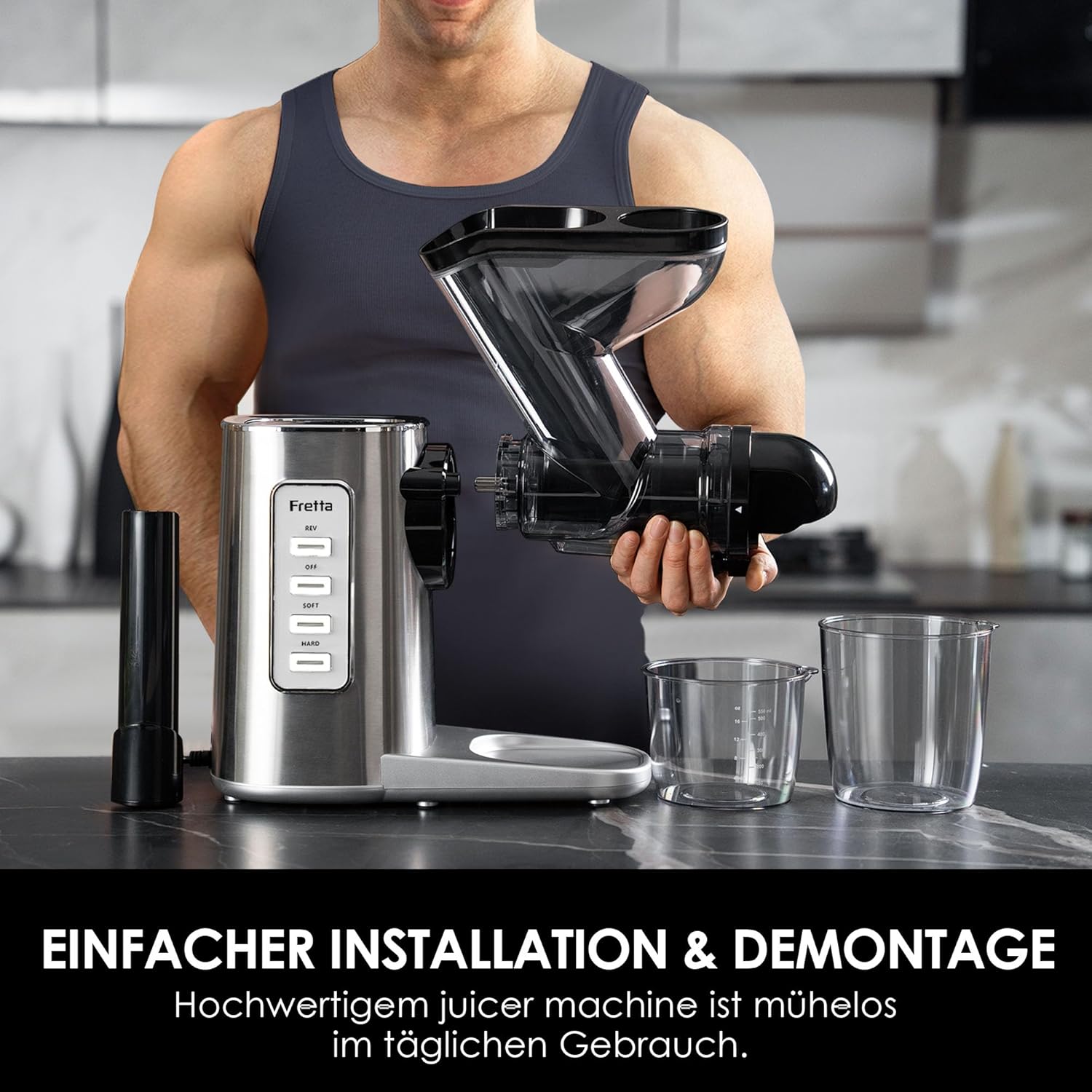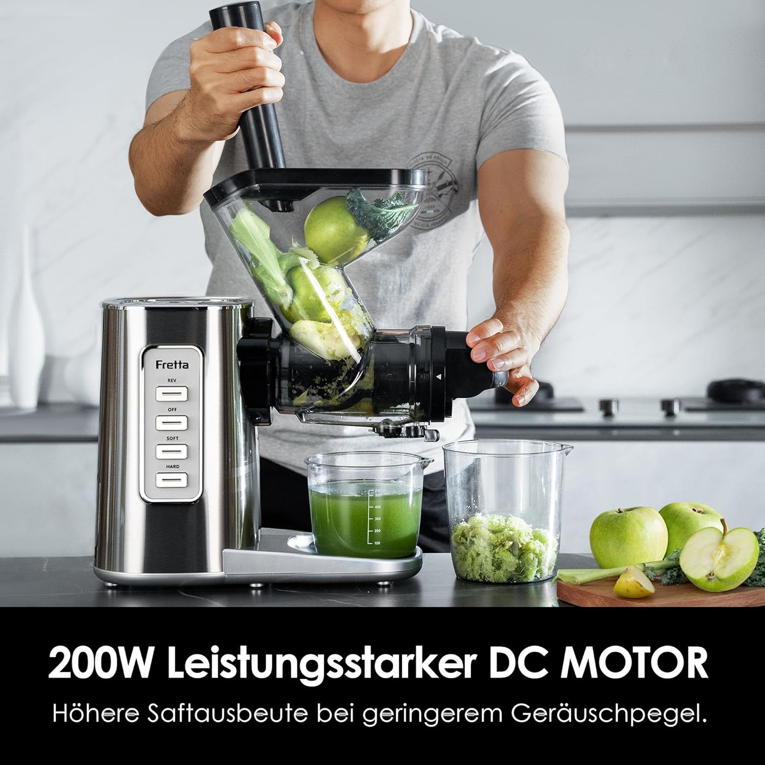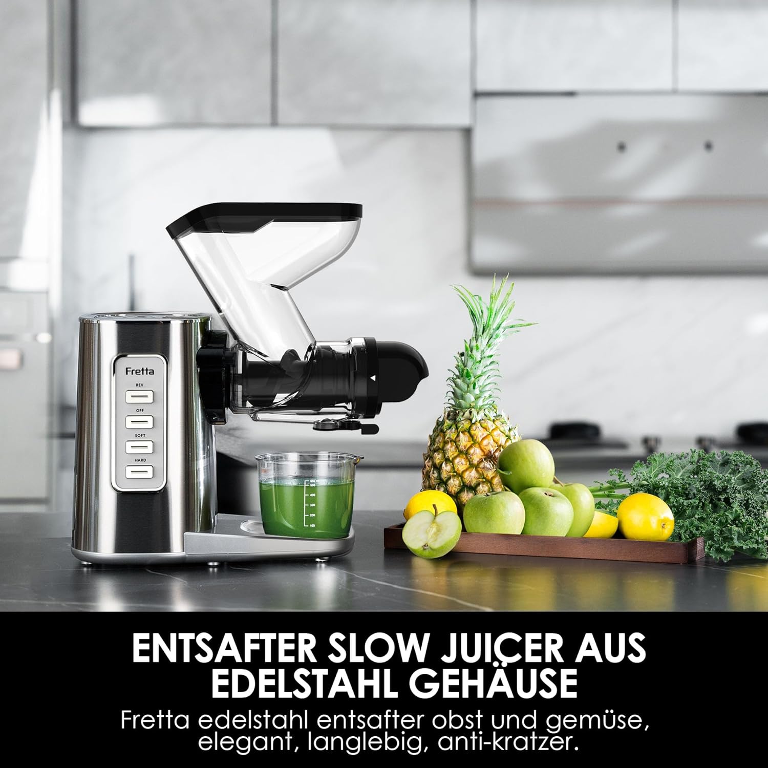 Fretta Entsafter Slow Juicer Testsieger, Edelstahl Entsafter Gemüse und Obst, 200W Cold Press Juicer Machine Saftpresse Elektrisch 76MM Große Öffnung, Hohe Saftausbeute, Einfache Reinigung, BPA Frei | قیمت یورویی 110.49€