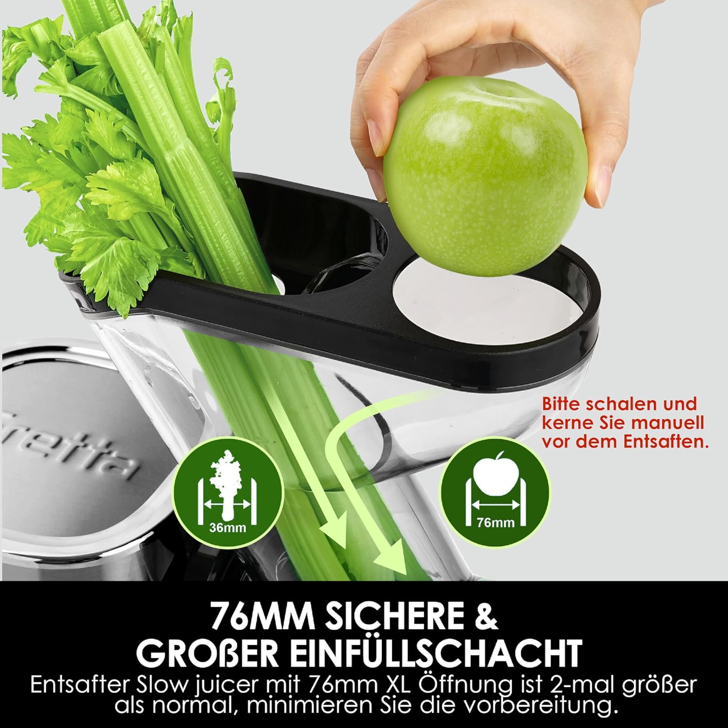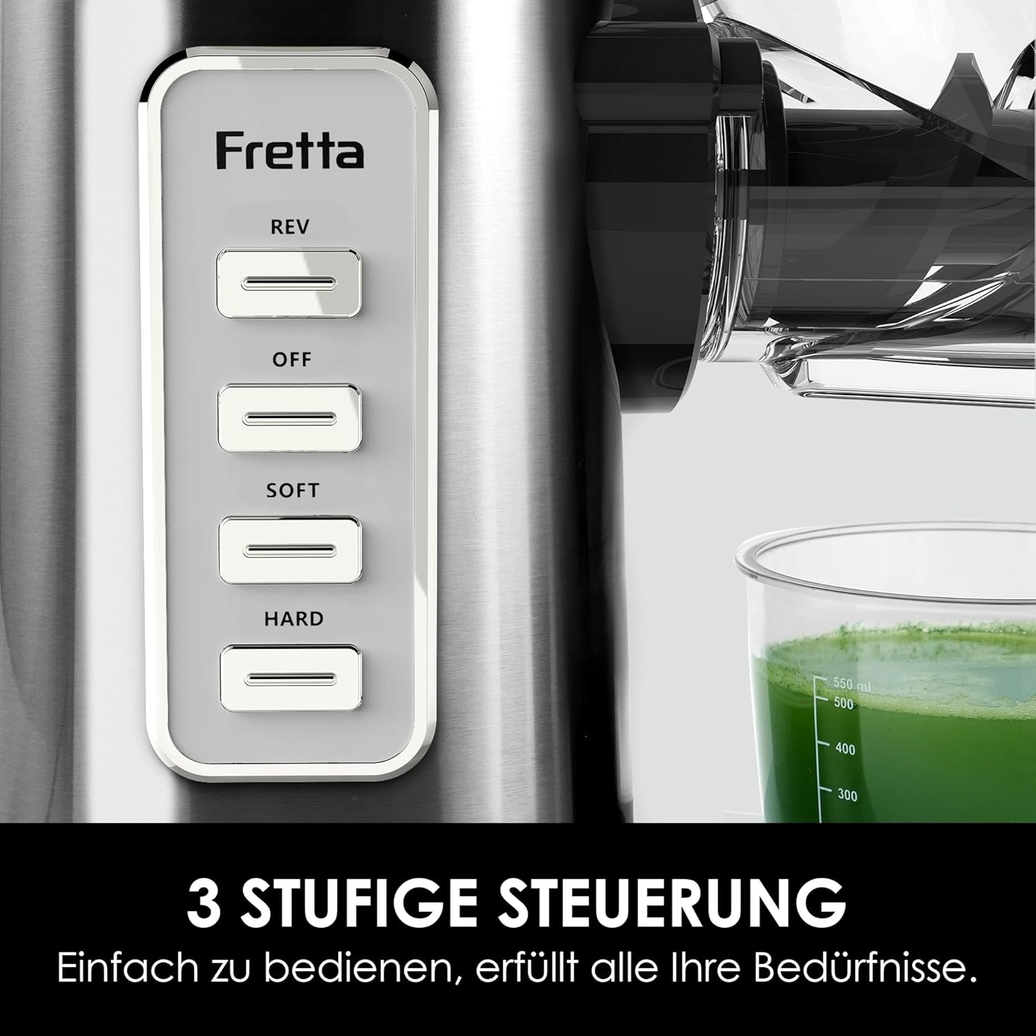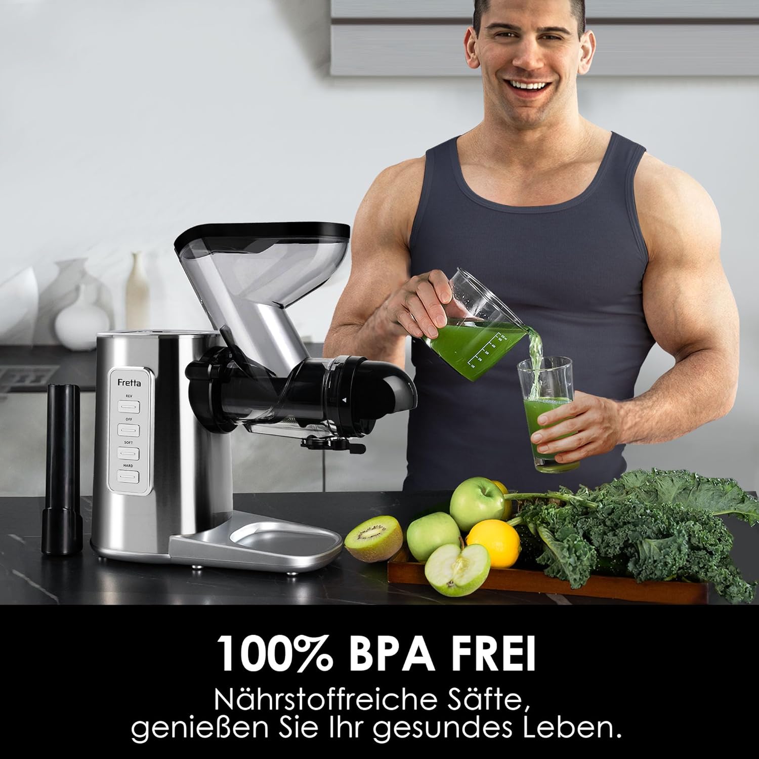 Fretta Entsafter Slow Juicer Testsieger, Edelstahl Entsafter Gemüse und Obst, 200W Cold Press Juicer Machine Saftpresse Elektrisch 76MM Große Öffnung, Hohe Saftausbeute, Einfache Reinigung, BPA Frei | قیمت یورویی 110.49€