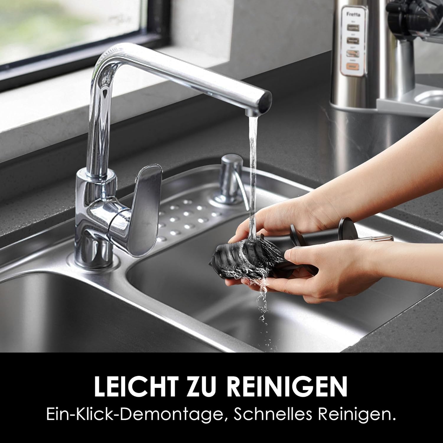 【Entsafter Gemüse und Obst Testsieger】Fretta Edelstahl Entsafter Slow Juicer Machine ist ideal für die Zubereitung von Obst- und Gemüsesäften und wurde als Testsieger ausgezeichnet. Diese Obstpresse Elektrisch Fresh Juice Maker Maschine auch perfekt für den Alltag, Sport, Vegan, Saftkur oder zum Abnehmen. Profi Cold Press Juicer Maschine Saft Presse Sie zahlreiche leckere Saftideen für Ihren. 【Großer Öffnung Entsafter Elektrisch】Horizontaler Slow Juicer Entsafter Selleriesaft Presse Meyve Sıkma Makinesi ist mit einem 76MM Breiter Einfüllschacht ausgestattet, der es einfach macht, große Obst- und Gemüsestücke zu entsaften, ohne mühsames Schneiden und so sparen Sie Ihre Zeit. Kaltpresse Entsafter für Obst und Gemüse ist Großartiges geschenk für Valentinstag, Muttertag, Erntedankfest, Halloween, Weihnachten. 【Sicheres Y-förmiges & Effiziente Doppelten Öffnung】Saftpresse Elektrisch Saft Maschine mit Sicheres Y-förmiges Design speziell entwickelt wurde, um ein versehentliches Einführen mit der Hand zu verhindern und das Risiko von möglichen Handverletzungen zu minimieren. Elektrischer Apfelsaftpresse mit doppelten Einfüllschacht ausgestattet, können Sie mehrere Zutaten gleichzeitig einfüllen, was Ihnen Zeit und Mühe beim Entsaften spart. 【BPA Freie für Ihr Wohlbefinden 】Edelstahl Entsafter Karottensaft Gemüsepresse Schnecke aus Tritan und dauerhaft 304 Edelstahl Material hergestellt, das eine BPA-Freie Entsafterfahrung garantiert, die sicher ist und schützen Sie und Ihre Familie vor den möglichen Gefahren schädliche Chemikalien. Können Sie frischen Saft bedenkenlos genießen. Edelstahl Entsafter Slow Juicer Testsieger ist ideal für Allergiker. 【Einfache Montage & Schnelle Reinigung】Kaltentsafter Zitruspresse Elektrische Obstpresse ist für eine mühelose Verwendung konzipiert. Mit nur einem einzigen Knopfdruck lässt sich der Entsafterkörper leicht abnehmen und unter fließendem Wasser reinigen. Diese Fruchtentsafter für Gemüse mit einem kleinen Bürste können Sie mühelos alle kleinen Trester aus dem Entsaftersieb entfernen können. Schnelle Reinigung, Zeit und wasser sparen. 【Hohe Saftausbeute & Reiner Saft】Neu Low-Speed-Kaltpressen-Technologie ermöglicht effizient ausgepresst Obst und Gemüse, erzeugt praktisch keine Hitze, wodurch die Schaumbildung minimiert und Oxidation, So Saft Frisch Halten. Verbesserte 7-stufige Schnecke maximiert die Saftausbeute. Edelstahlfilter mit einem feinen und dichten Netz ausgestattet, Saft angemessen vom Trester trennt Nährstoffe und Vitamine behält. Jeder Schluck, den Sie nehmen, ist ein reiner und köstlicher Saft. 【Edelstahlgehäuse, langlebig und stilvoll】Elektrische Saftpresse Edelstahl Fruchtsaftpresse ist mit einem Metallgehäuse gefertigt, das im Vergleich zu Kunststoffgehäusen eine verbesserte Praktikabilität bietet. Edelstahl Apfelsinenpresse Orangenpresse nicht nur eine verbesserte Haltbarkeit, sondern trägt auch zu seiner Ästhetik bei und verleiht ihm ein hochwertigeres und anspruchsvolleres Aussehen, leicht zu reinigen, ohne Fingerabdrücke. 【Mehr als Saft】Perfekt wahl als Apfelpresse, Orangenpresse, Traubenpresse, Granatapfelpresse, Selleriesaftpresse, Ingwerpresse, Karottensaftpress, Beerenpresse, Tomatenpresse, Zwiebelpresse, Zitronenpresse, Rübenpresse, Nussmilcmaschine, etc. Verabschieden Sie sich von der Verschwendung und holen Sie das Beste aus Ihren Zutaten heraus! Können Sie Viele Leckereien wie z.B. kuchen, Kekse, Muffins, Pizza, Suppe, sogar Tierfutter oder Natürlicher Dünger für Anlagen. 【2 Geschwindigkeitsstufen & Rückwärtsfunktion】"Soft-Modus" (85-100 U/min) zum Entsaften von Orangen, Wassermelonen, Trauben, Beeren und weichen Früchten."Hard-Modus" (95-110 U/min) für Äpfel, Birnen, Karotten, Gurke, Rüben, Sellerie, Weizengras, Ingwer, Grünkohl, Wirsing, Kräuter,Salat und härtere Zutaten. Fruchtsaftpresse mit Umkehrfunktion verhindert Verstopfungen und erleichtert die Reinigung, indem Rückstände effektiv reduziert werden. 【Leistungsstarker & Ruhiger DC Motor】Fretta Orange Juice Machine Presser werden von einem robusten 200W Gleichstrommotor angetrieben. Das Design mit hohem Drehmoment und niedriger Drehzahl arbeitet leise und extrahiert die Nährstoffe aus Ihren Lieblingsfrüchten und -gemüsen. Diese Elektrisch Orangenpresse läuft unter 70DB, so dass er Ihre Nachbarn und Familie nicht stört. | قیمت یورویی : 110.49€