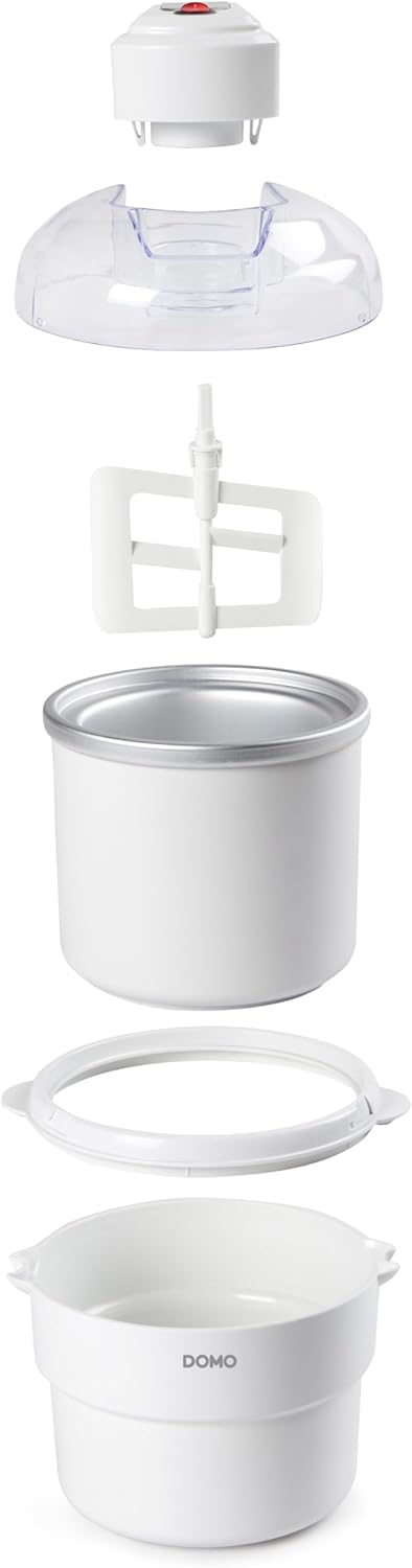DOMO DO2309I Eismaschine mit Gefrierschüssel - 1 L - weiß لینک آمازون : https://www.amazon.de/dp/B00DHEU4FC?th=1&psc=1 بستنی ساز جمع و جور برای تهیه ۱ لیتر بستنی ظرف فریزر قابل جدا شدن درب شفاف با دهانه پر کردن تنها با فشار یک دکمه قابلیت جداسازی سریع برای تمیز کردن آسان شامل دستور پختهای خوشمزه محافظت در برابر گرمای بیش از حد ۲۲۰-۲۴۰ ولت - ۵۰ هرتز - ۱۲ وات