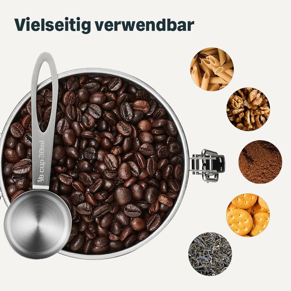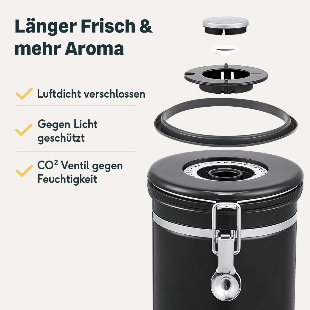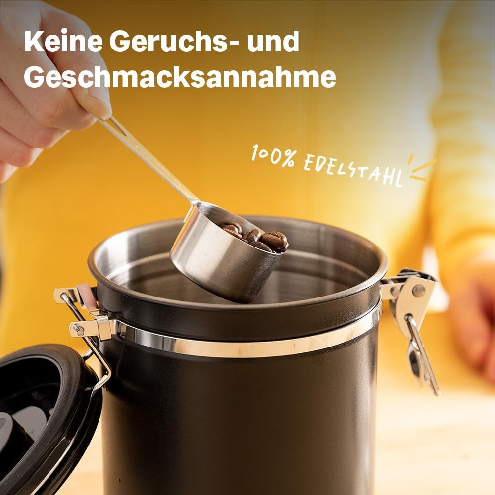 ✔ Langanhaltende Frische - Die Kaffeedose aus Edelstahl ist luftdicht, lichtgeschützt und feuchtigkeitsresistent. Das CO2-Ventil verhindert den Oxidationsprozess, sodass Aroma erhalten bleibt. ✔ Geruchsneutral – Dank Edelstahl ist der Kaffeekanister nicht nur robust, widerstandsfähig und damit langlebig. Es nimmt im Vergleich zu Kunststoffdosen auch keinen Geruch an. ✔ Praktisch - Mit Löffel zum Dosieren des Kaffees und einstellbaren Kalender: Durch den anpassbaren Kalender auf dem Deckel kann die Haltbarkeit leicht überwacht werden. ✔ Multifunktional – Ob Kaffee in ganzen Bohnen, gemahlen oder lose Teeblätter, Gewürze, kleine Leckereien oder Getreide. In dieser Dose findet es Platz und bleibt frisch und aromatisch. ✔ Verschenke Eleganz – Die Kaffeedose dient als ideales Geschenk für Teeliebhaber und Kaffeegenießer. | قیمت یورویی : 46.39€