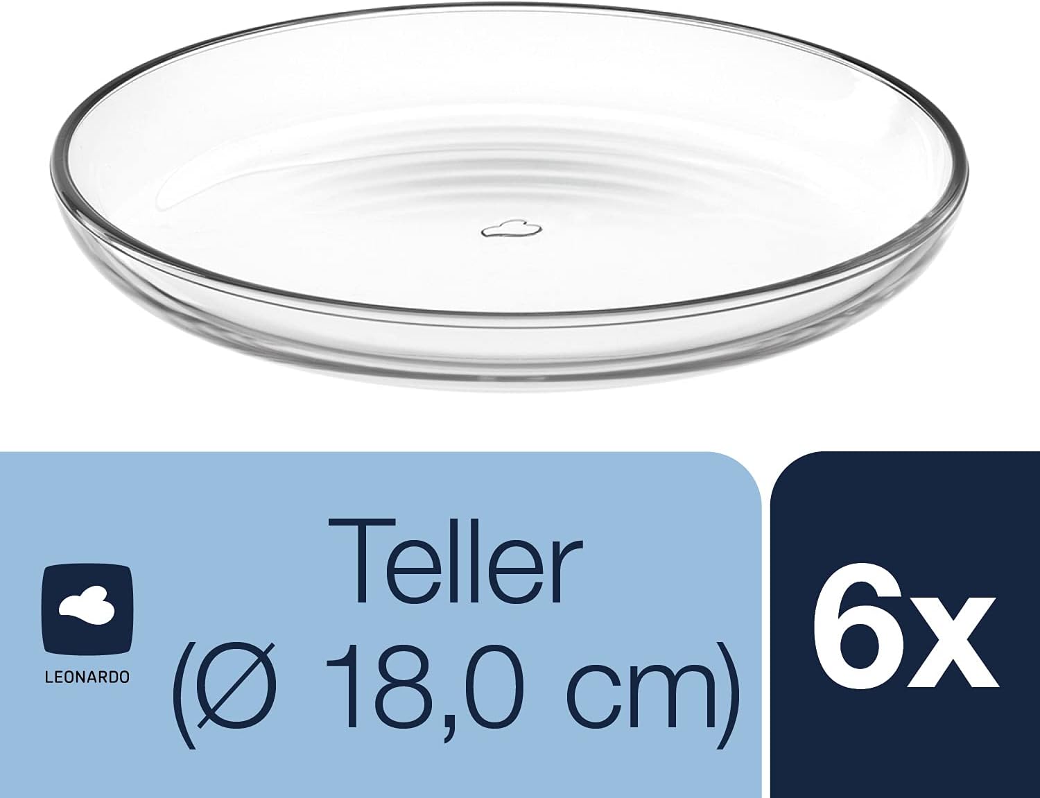 LEONARDO HOME Cucina Teller, 6-er Set, Durchmesser 18 cm, mikrowellengeeignet, Klarglas, 066330 | قیمت یورویی 32.99€
