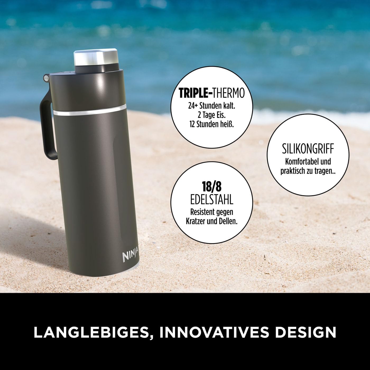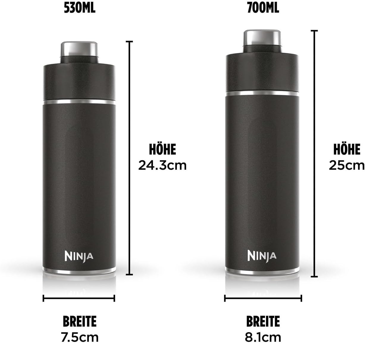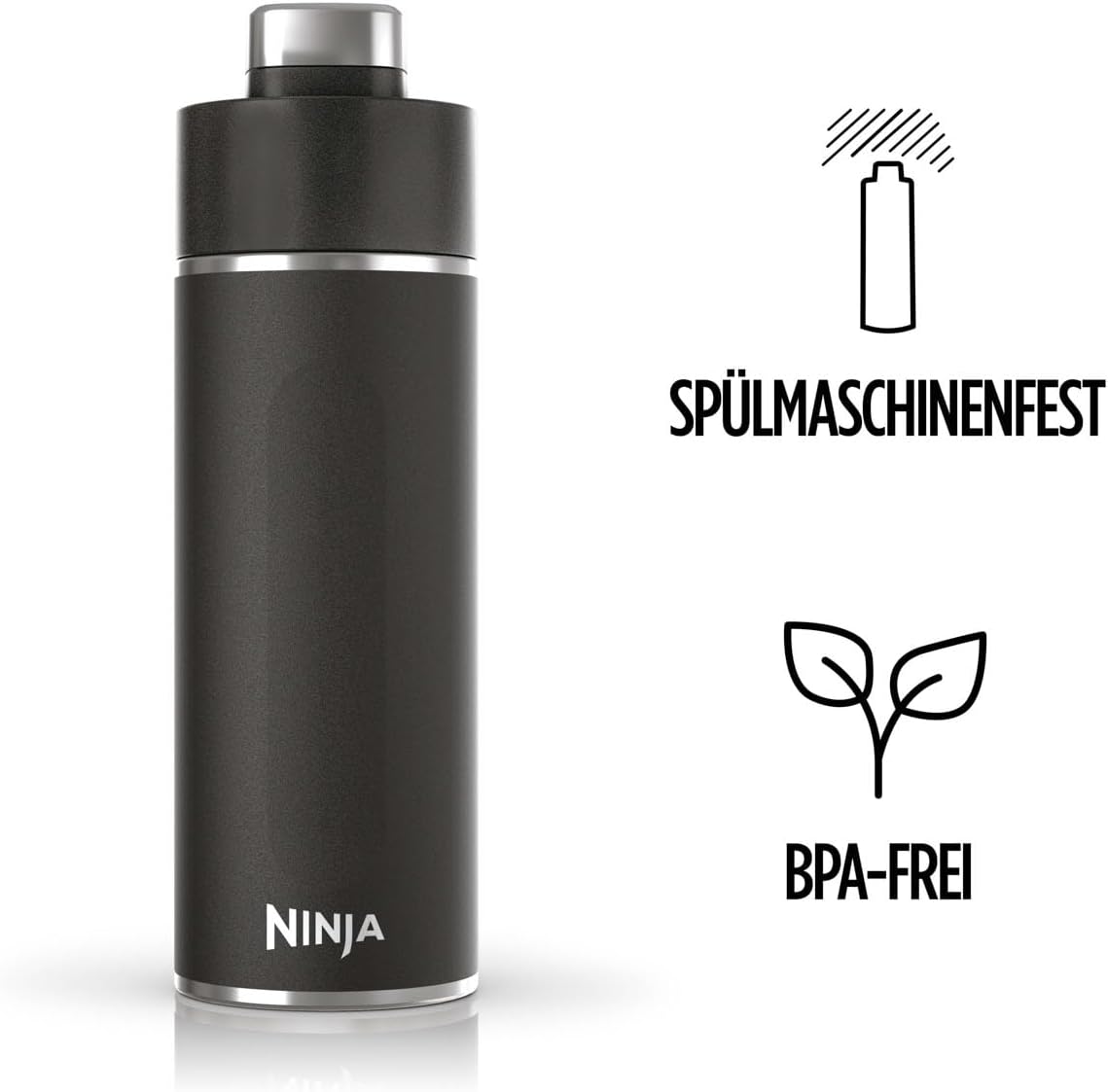 GENIESSEN SIE HEIßE, KALTE & KOHLENSÄUREHALTIGE GETRÄNKE: Die Isolierung mit Dreifach-Vakuum hält Getränke heiß oder kalt und bewahrt den Sprudel für Stunden. Kalte Getränke bleiben bis zu 24 Stunden lang kalt, heiße Getränke bis zu 8 Stunden lang heiß, Eis bleibt bis zu 2 Tage lang gefroren AUSLAUFSICHERER DECKEL: Tropft nicht bei heißen, kalten oder kohlensäurehaltigen Getränken. Enthält eine Gummieinlage, um eine dichte, auslaufsichere Abdichtung zu gewährleisten EINMAL SPRUDELND, IMMER SPRUDELND*: Glatte Edelstahl-Innenseite reduziert Nukleationspunkte für anhaltenden Sprudel. (*Im Labor getestet mit handelsüblichen kohlensäurehaltigen Getränken, um eine Mindestkohlensäure von 2,5g/l während der Testdauer zu behalten.) LEICHT ZU REINIGEN: Ninja Thirsti Wasserflaschen sind spülmaschinenfest und können auch von Hand mit warmem Seifenwasser gereinigt werden ENTHÄLT: Ninja Thirsti Wasserflasche & Deckel. Abmessungen: H: 24,3 cm x B: 7,5 cm x T: 8,3 cm. Gewicht: 380 g. Fassungsvermögen: 530 ml. Farbe: Schwarz 5-JAHRES-GARANTIE**: (**Begrenzte Garantie gegen Herstellungsfehler. Bei Registrierung bei Ninja.) | قیمت یورویی : 26.99€