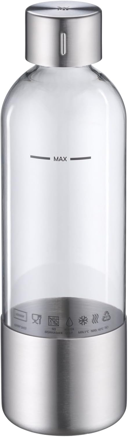 WMF Element One Flasche für Wassersprudler: Wassersprudeln nach Ihrem Geschmack Perfekt Passend für den Element One Wassersprudler Qualitativ hochwertige PET-Flasche: Langlebig mit Deckel und Bodenkappe aus rostfreiem Edelstahl. Kaufen Sie den PET-Flaschenkörper separat, wenn er aufgebraucht ist, um die Edelstahlkomponenten für noch mehr Nachhaltigkeit wiederzuverwenden Die Flasche ist dank des einzigartigen Klick-Systems mit Bajonetthalterung besonders einfach einzusetzen und zu entnehmen. Mit einer Kapazität von 850 ml bis zur MAX-Linie — die perfekte Art, um Ihr köstliches selbstgemachtes Sprudelwasser tagelang frisch zu halten | قیمت یورویی : 19.99€