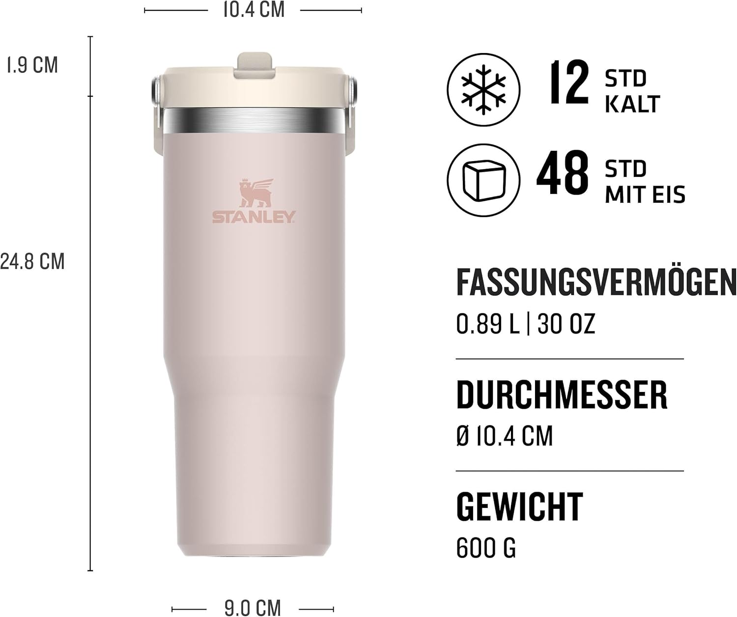 Stanley Flip Straw Tumbler 1.0 Trinkflasche Mit Strohhalm 0.89L - Thermosflasche Hält 12+ Stunden Kalt - Spülmaschinenfest - Sportflasche - Wasserflasche BPA Frei - Rose Quartz | قیمت یورویی 47.04€