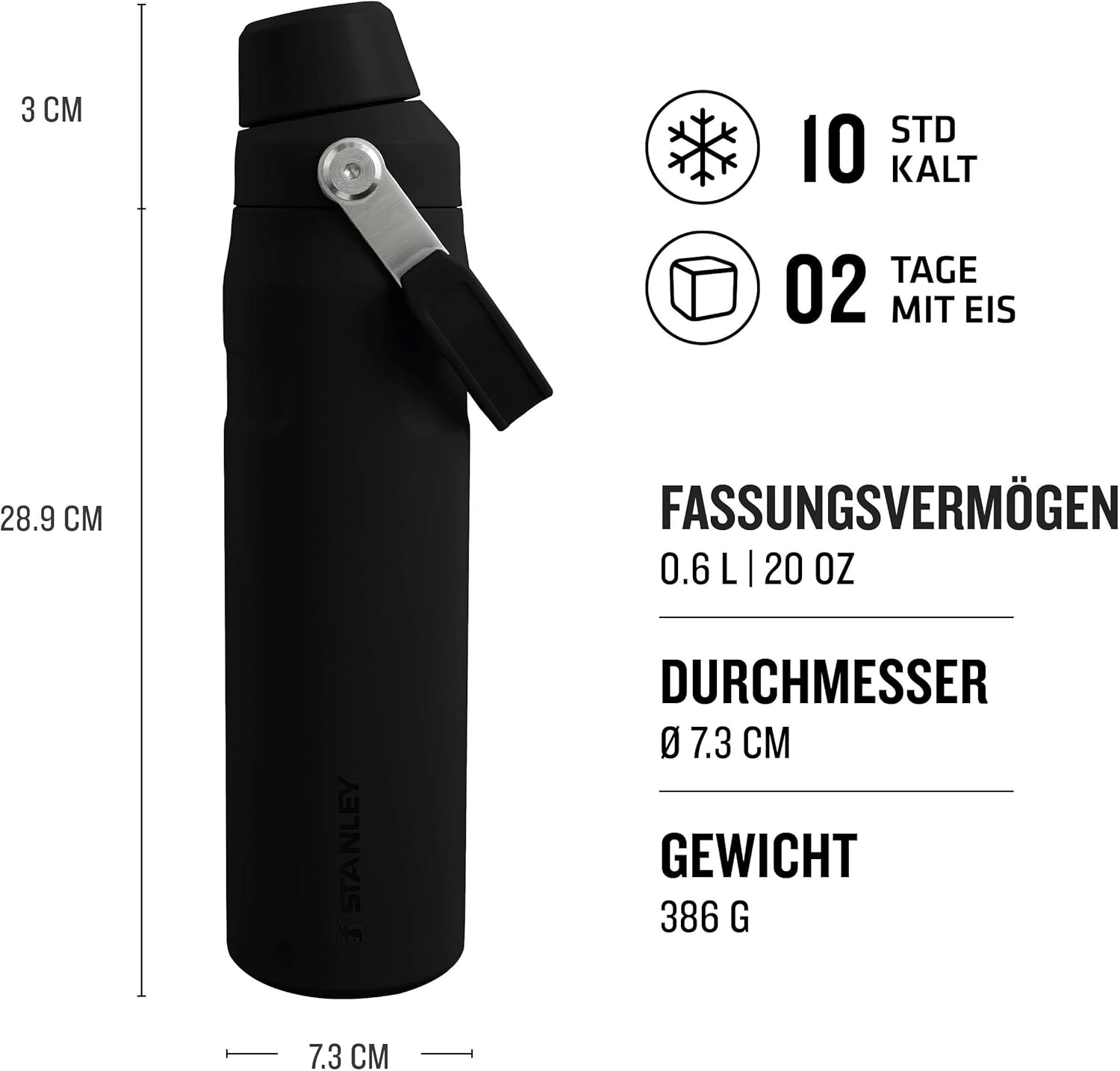Stanley Iceflow Fast Flow Trinkflasche Sport 0.6L - Thermosflasche Hält 10 Stunden Kalt - Spülmaschinenfest - Wasserflasche Auslaufsicher - Sportflasche BPA-Frei - Black Schwarz | قیمت یورویی 38.99€