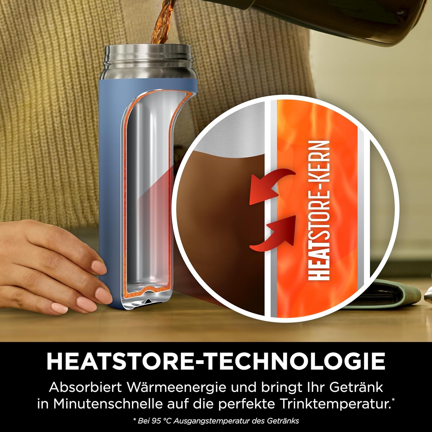 HEATSTORE-Technologie: Absorbiert die Wärme und bringt heiße Getränke in wenigen Minuten* auf die perfekte Trinktemperatur und hält diese über Stunden konstant (*Anfängliche Getränketemperatur 95 °C) AUSLAUFSICHERER DECKEL: Die LockLeak-Technologie verfügt über einen Verschlussmechanismus, der verhindert, dass Getränke verschüttet werden oder auslaufen – auch unterwegs oder in der Tasche THERMOSFLASCHE: Die Flasche fühlt sich auch dann kühl an, wenn sie mit heißen Flüssigkeiten gefüllt ist Hochwertige Abmessungen | قیمت یورویی : 30.25€