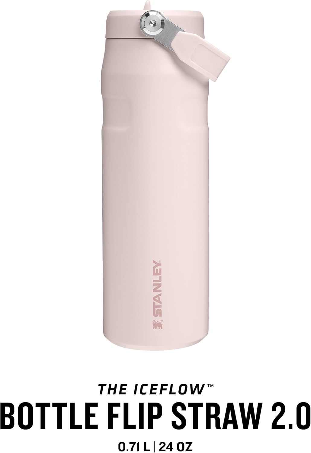 بطری نوشیدنی Stanley Flip Straw 2.0 با نی 0.7 لیتر - لیوان حرارتی 12 ساعت خنک می‌کند - یخ را به مدت 3 روز خنک نگه می‌دارد - بدون BPA - ضد نشت - برای جا لیوانی - قابل شستشو در ماشین ظرفشویی - رز کوارتز 0.7 لیتر رز کوارتز