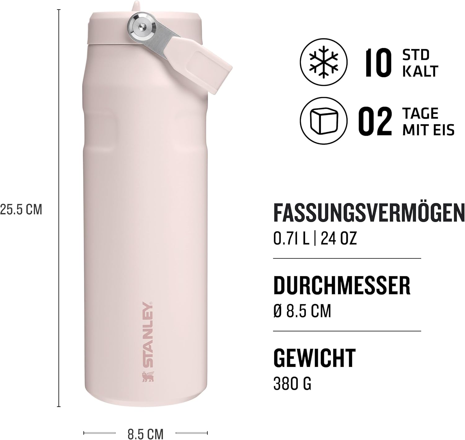 Stanley Flip Straw 2.0 Trinkflasche mit Strohhalm 0.7L - Thermobecher Kühlt 12 Stunden - 3 Tage Eisgekühlt - BPA-frei - Auslaufsicher - Für Getränkehalter - Spülmaschinenfest - Rose Quartz 0.7L Rose Quartz | قیمت یورویی 42.99€