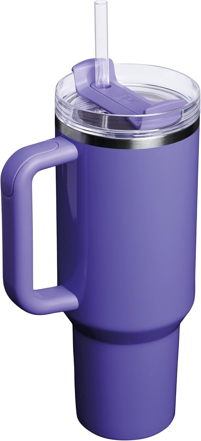بطری نوشیدنی Stanley Quencher H2.0 Flowstate با نی ۱.۲ لیتر - لیوان حرارتی ۱۱ ساعت خنک میکند - ۴۸ ساعت در حالت یخ - قابل شستشو در ماشین ظرفشویی - بطری فلاسک بدون BPA - لیوان نوشیدنی - Dahlia Shimmer