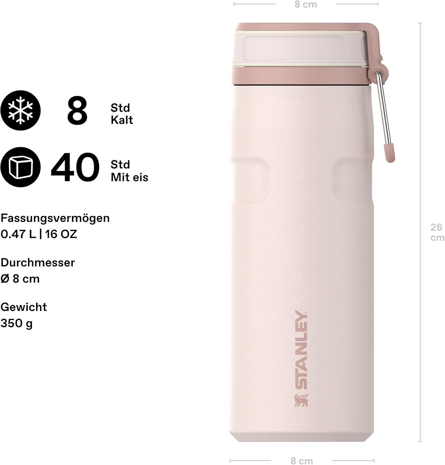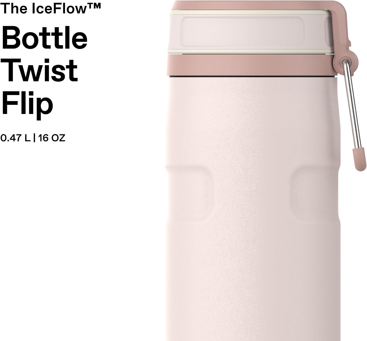 The IceFlow™ Bottle Twist Flip 0.47L / 16oz | Rose Quartz | Cold for 8 Hours | Iced for 40hrs | Dishwasher Safe | Recycled Stainless Steel | BPA Free | Double Wall Vacuum Insulation 470 ml Rose Quartz | قیمت یورویی 25.79€