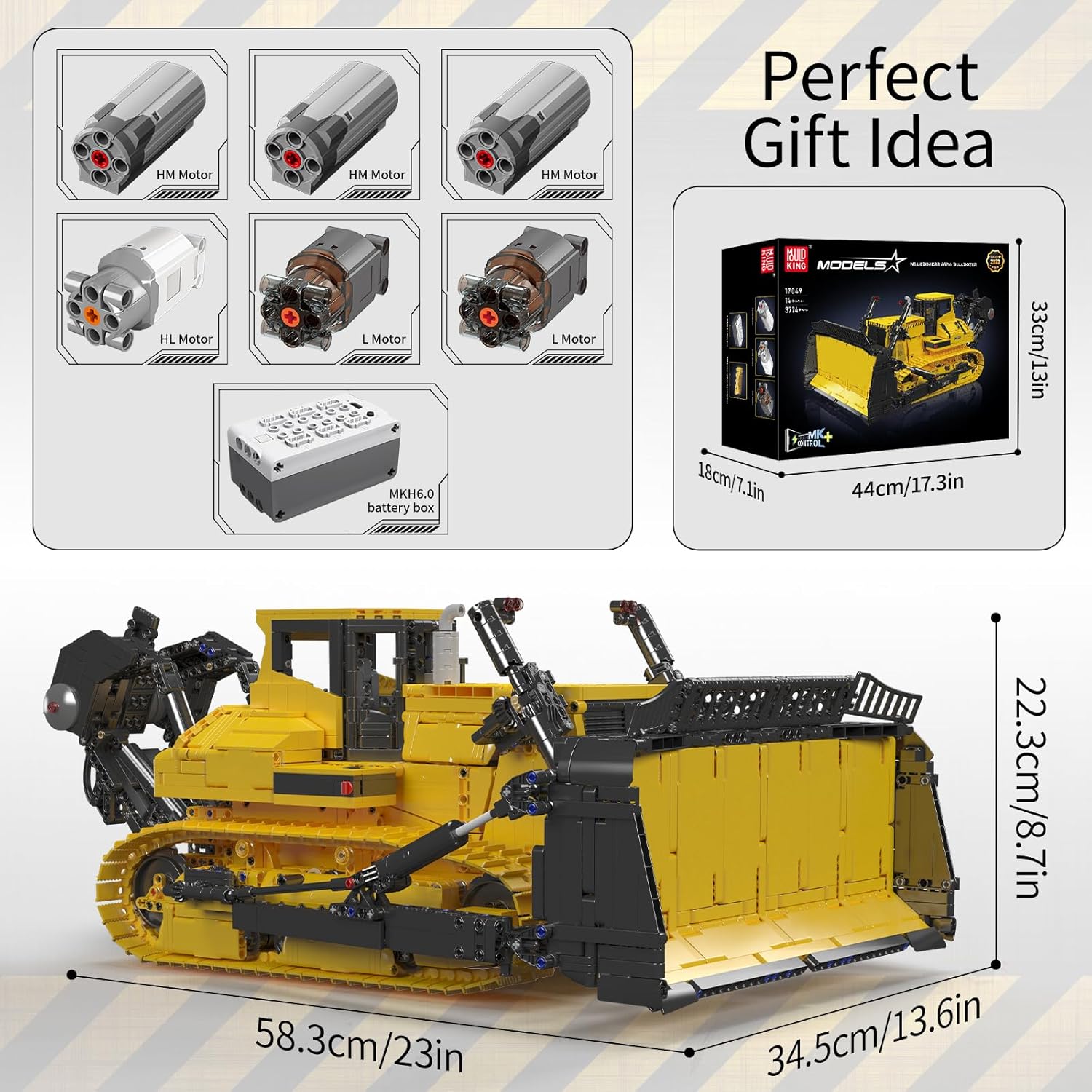 Mould King 17049 Technik Bulldozer Bausteine, App-gesteuerter Raupenbagger mit 6 Motoren Bausätze Spielzeug Geschenke Set für Erwachsene (3774 Teile), Gelb | قیمت یورویی 229.99€