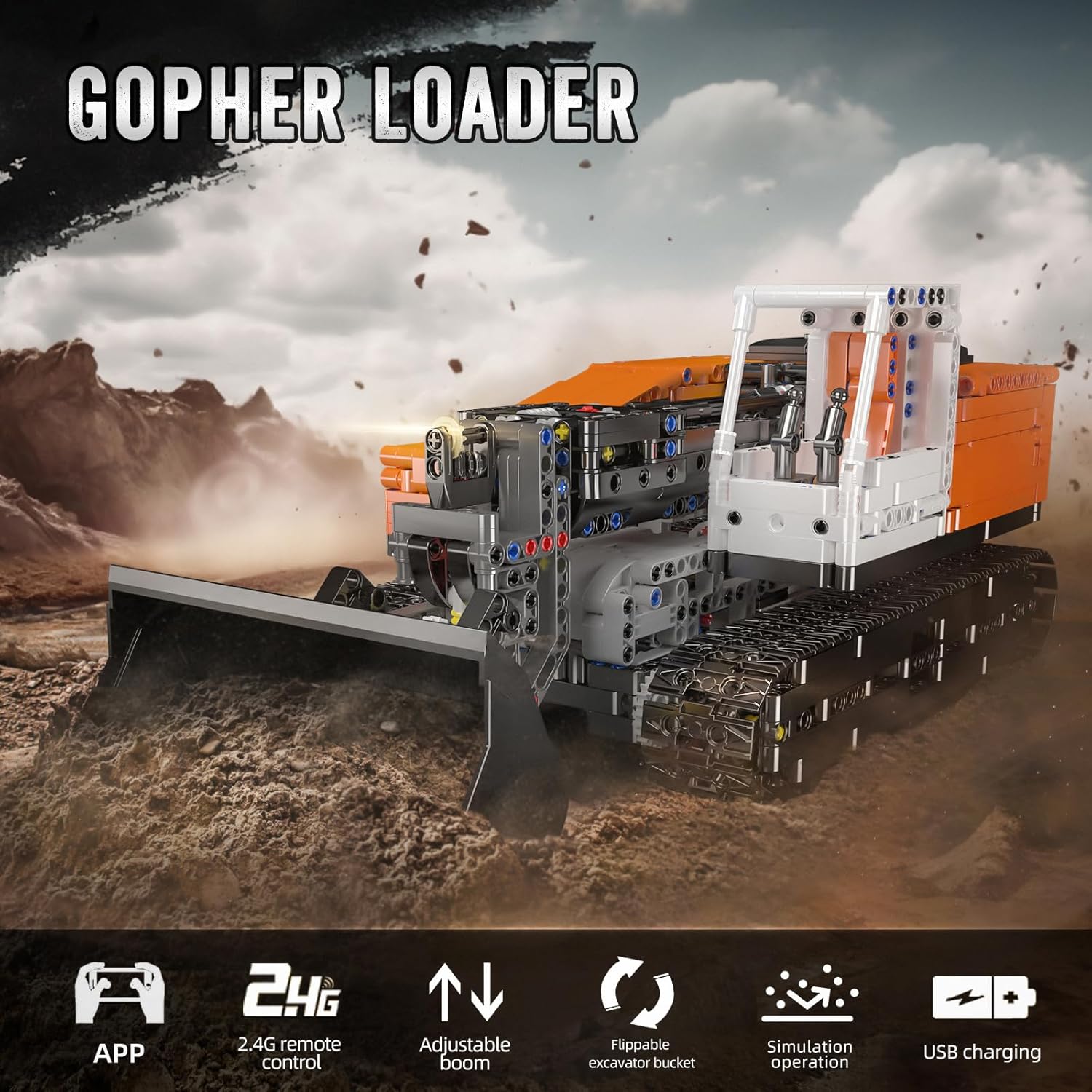 بلوکهای ساختمانی بولدوزر تکنیکی Mold King 17054، لودر تلسکوپی خزنده کنترل از راه دور برنامه با کیتهای ساخت موتورز، هدیه اسباببازی برای 14 سال به بالا (1423 قطعه)