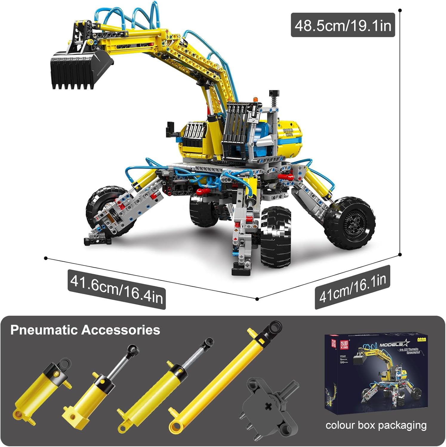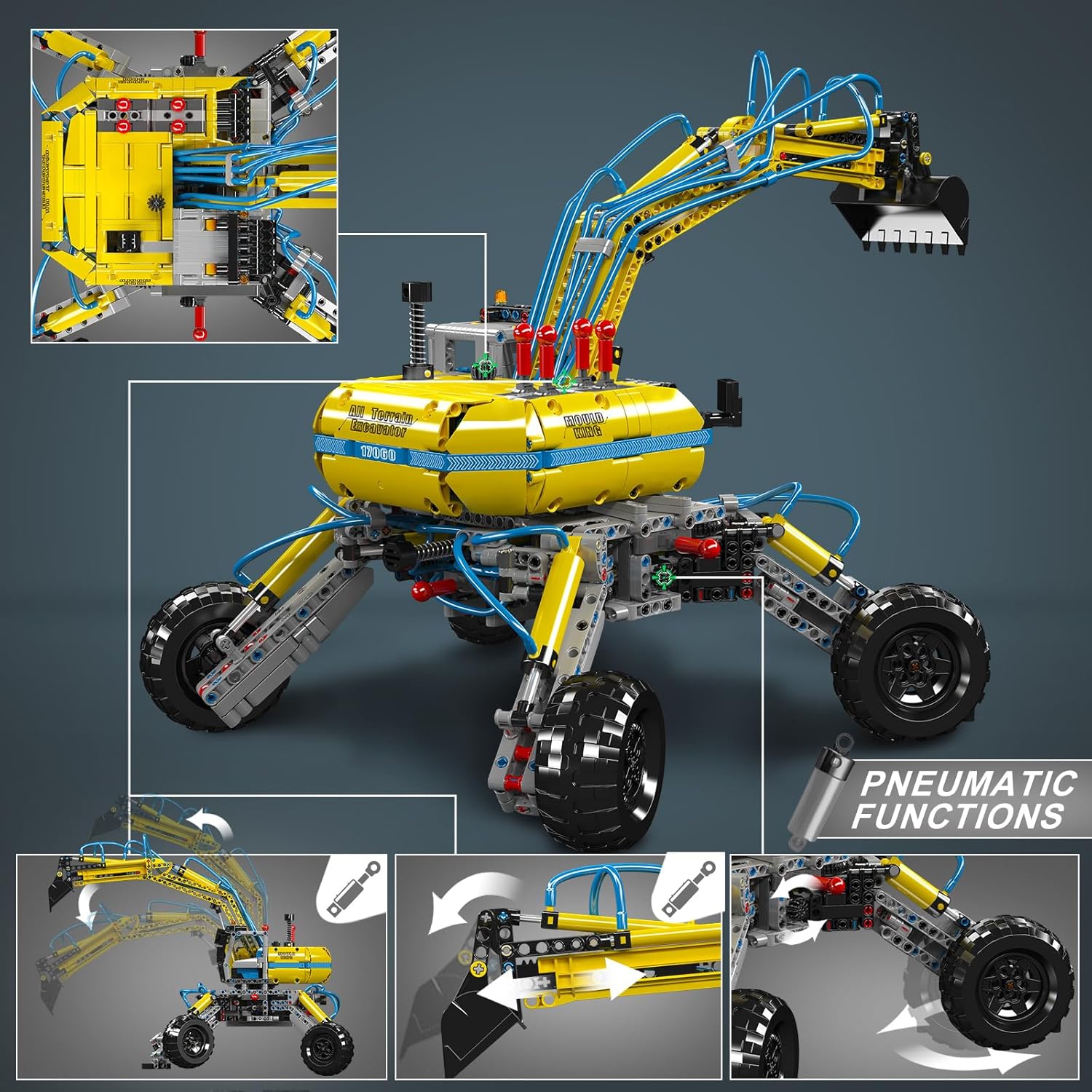 Mould King 17060 Technik Bagger Bausteine, 1392 Teile Pneumatisch All Terrain Bagger Modell, MOC Bagger Klemmbausteine Montagesatz Geschenk für Jungen und Mädchen ab 14 Jahren | قیمت یورویی 99.99€