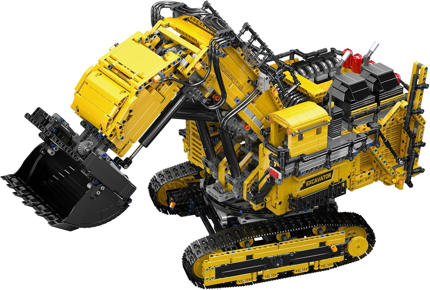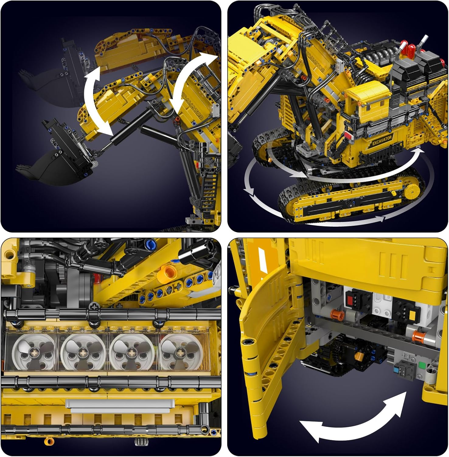 ⭐【Raupenbagger Modell】: Mould King Dieses APP Fernbedienung bagger klemmbausteine besteht aus 4767 Teilen, Größe: 65,7 × 30,4 × 40cm. Die robuste stahlschaufel gräbt und transportiert den boden in jede richtung. Der APP-Steuerung raupenbagger bausteine fährt vorwärts und rückwärts, und die Kabine lässt sich ohne einschränkung um 360 grad in jede richtung drehen. ⭐Vielseitige Bedienelemente: Vorwärts fahren, rückwärts fahren, lenken, den Aufbau drehen, ausfahren, um den Ausleger anzuheben und abzusenken, die Schaufel öffnen und kippen und Modellrückmeldungen wie Ausleger- und Aufbauposition, Stromverbrauch und Fahrstrecke erhalten.Öffne die Motorhaube, um dir den detaillierten 6-Zylinder-Reihenmotor mit beweglichen Kolben anzusehen. Öffne die Türen, um Zugang zum Innenraum zu erhalten. Drehe am hinten montierten Ersatzrad, um die Heckklappe zu öffnen. ⭐Felgen im Originaldesign mit griffigen Reifen, einen abnehmbaren Dachträger mit Aufbewahrungsbox, Tasche, Leiter und Bodenmatten, Türen zum Öffnen, Motorhaube und Heckklappe sowie einen detaillierten Innenraum. Mould King Technik bagger ist ausgestattet mit 1x L-Motoren,1x HXL-Motor,2x XL-Motor,2x HL-Motor und 1 Lithium-Batteriekasten. ⭐Im Innenraum gibt es ein detailliertes Armaturenbrett, ein funktionierendes Lenkrad und nach vorne klappbare Rücksitze, die den Blick auf das sequenzielle 4-Gang-Getriebe freigeben.Eine Gangschaltung mit 2 Hebeln zum Einlegen hoher oder niedriger Übersetzungsverhältnisse und einen Wählhebel zum Wechseln des Gangs machen es zum bisher ausgefeitlesten Getriebe! ⭐【USB-betriebenes Design】: Dieser Spielzeugbaustein verwendet einen Hochleistungsmotor, (1* L-Motoren, 1* HXL-Motoren, 2* Leistungsstarker HL-Motor, 2* XL-Motoren), der starke Leistung liefern kann, sowie einen 7,4 V / 550 mAh großen wiederaufladbaren Lithium-Ionen-Akku, der die beste Laufzeit bietet. Es unterstützt Bluetooth Fernbedienung Betriebsmodi: APP-Fernbedienung. | قیمت یورویی : 239€