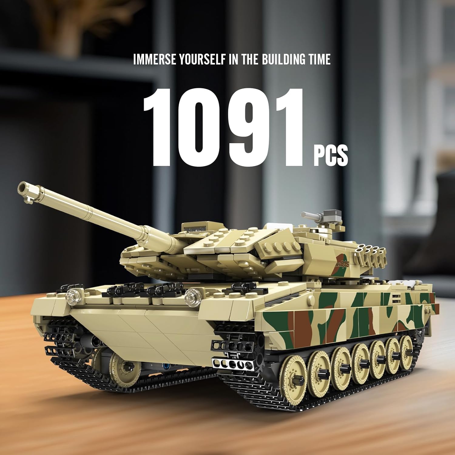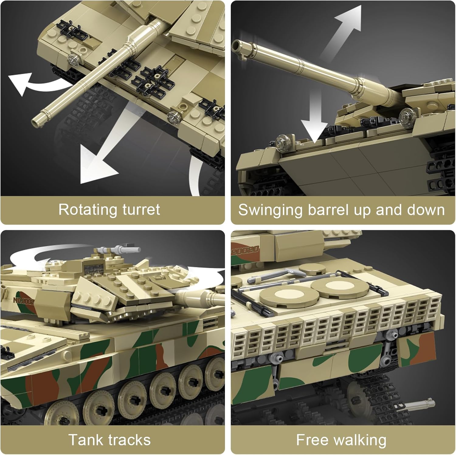 Mould King 20020 Technik Panzer Bausteine, Kreativität Leopard Tiger Panzer mit Fernsteuerung und Motoren, 1091 Teile MOC Fernbedienung Tank Klemmbausteine Bausatz Spielzeug | قیمت یورویی 67€