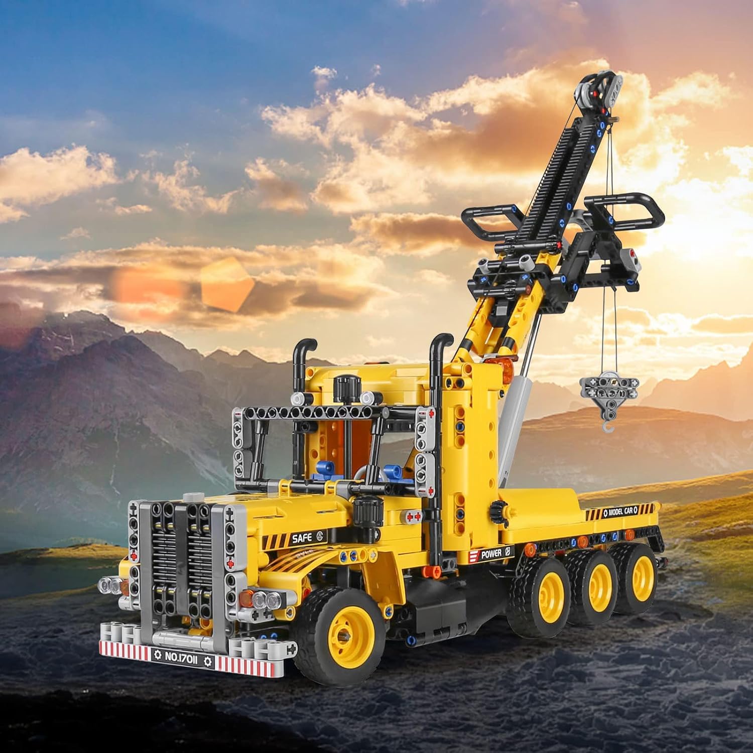 Mould King 17011 Technik Abschleppwagen Kran Klemmbausteine, 1250 Teile Engineering Series LKW Modell Anhänger Montagesatz, Trailer Building Block Konstruktionsfahrzeug(Ohne Motor) | قیمت یورویی 65.99€