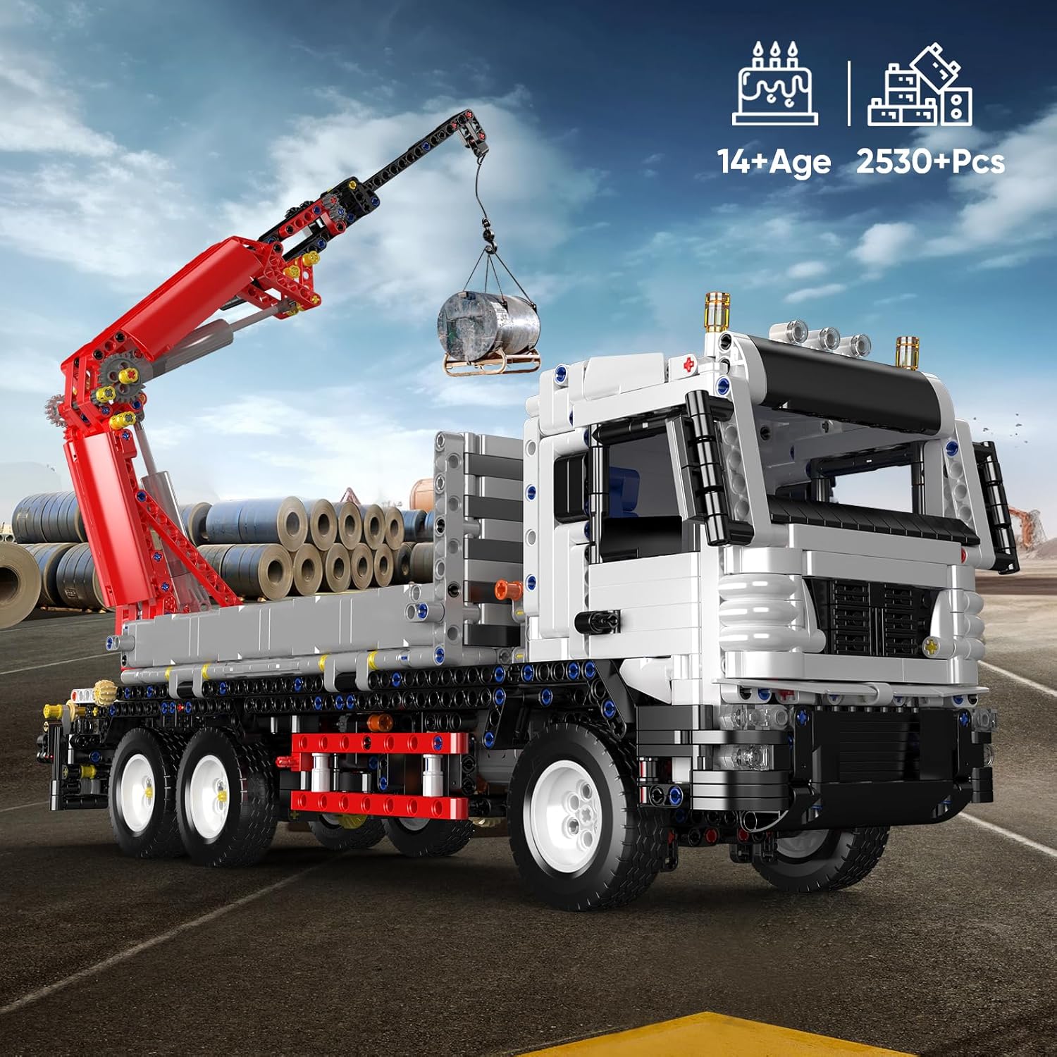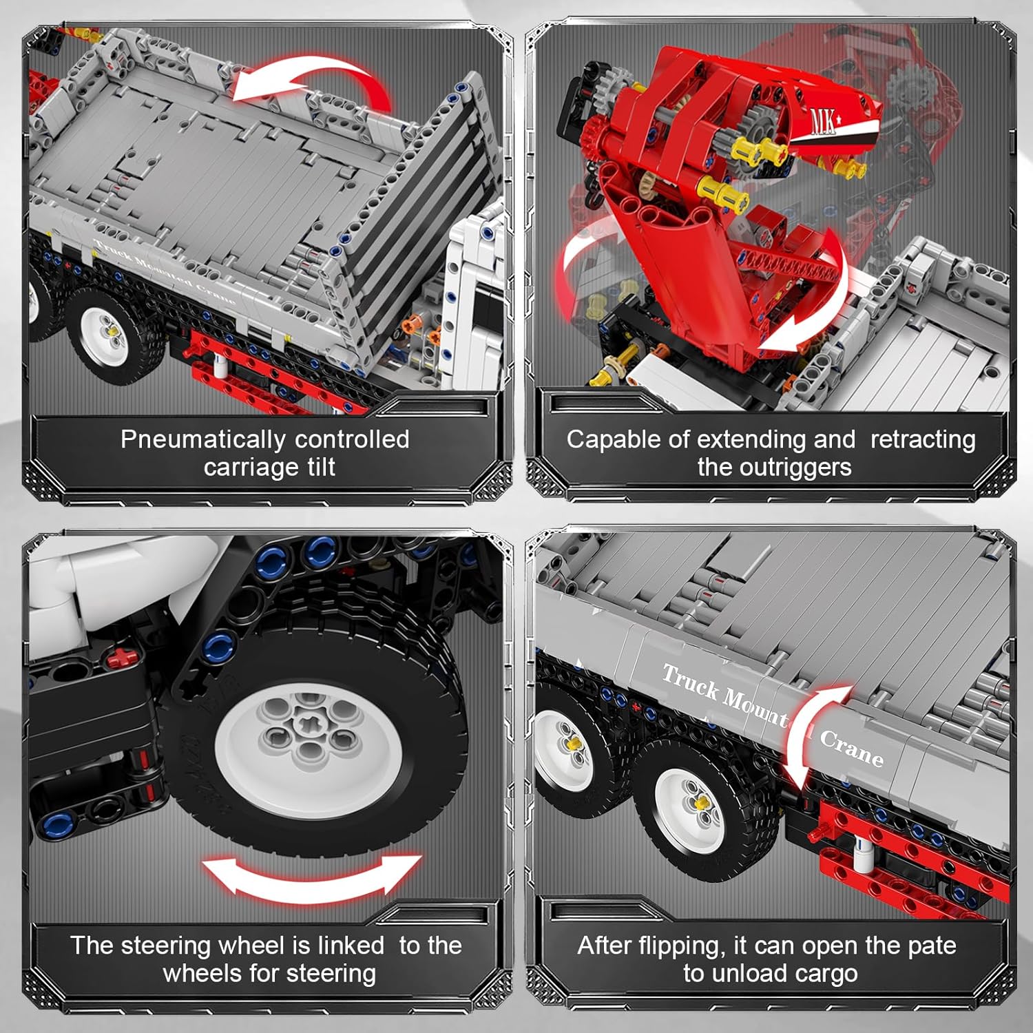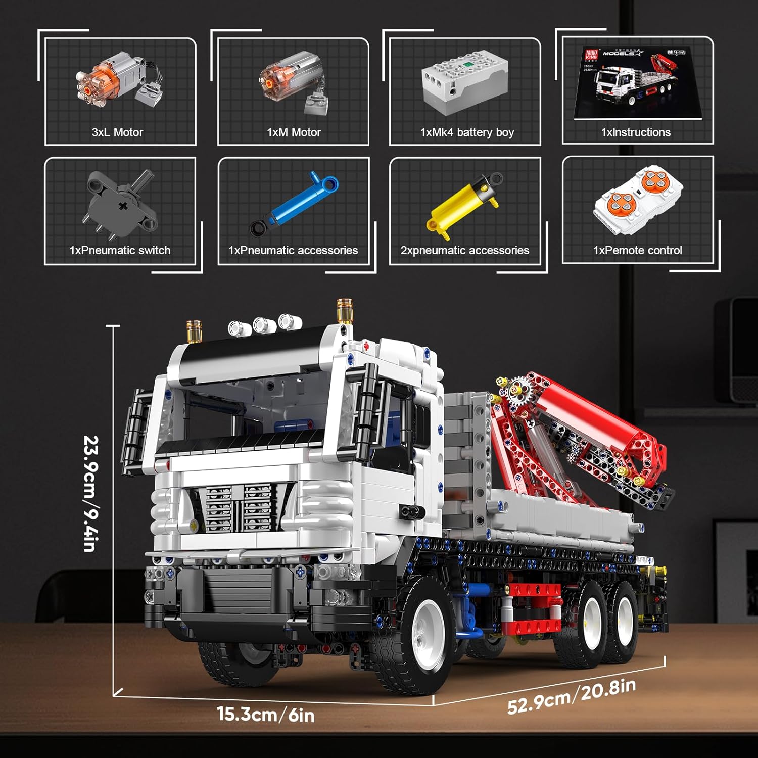 Technik Luftpumpen-Muldenkipper-Kranmodell – Der Kran ist mit 2,4G-Fernbedienung und APP-Steuerungssystem kompatibel. Genießen Sie mit dem technischen Modellbausatz ein faszinierendes Architekturerlebnis. Er unterstützt 2 Fernbedienungsmodi – Fernbedienungsmodus und Planungsfunktion. Sie können diesen Leiterkran verwenden, ohne sich Gedanken über die Entfernung machen zu müssen. Einfach zusammenzubauen – Dieser Bausteinsatz besteht aus 2530 Bausteinteilen in nummerierten Beuteln und farbenfrohen Anweisungen, die Ihnen den Zusammenbau erleichtern. Sie können ihn mit Ihrem Partner oder Ihren Kindern fertigstellen, es wird eine sehr interessante Sache. USB-betriebenes Design – Dieses Bausteinspielzeug verwendet einen robusten Motor, der starke Leistung liefern kann, und einen wiederaufladbaren Lithium-Ionen-Akku mit 4,07 V/400 mAh, der die beste Akkulaufzeit bietet. Einfach aufzuladen, Sie können das Spielzeug über eine Steckdose, eine tragbare Powerbank, einen Laptop usw. aufladen. Und die Fernbedienung benötigt 2 AAA-Batterien (nicht im Lieferumfang enthalten). Bauen Sie Ihren eigenen Kranwagen zum Ausstellen – Das fertige Modell misst 52,9 cm (L) x 15,3 cm (B) x 23,9 cm (H). Die Auslegerarme können ausgefahren und eingefahren werden. Es ist äußerst dekorativ und erfordert außergewöhnliche Designfähigkeiten, was es zu einem perfekten Geschenk für Liebhaber technischer Autos macht. Exquisites Geschenk für Kinder – Ein cooles ferngesteuertes Kranwagenspielzeug für Mädchen und Jungen, das sich ideal als Geburtstags- oder Weihnachtsgeschenk eignet. Unsere Kunden schätzen die Servicequalität und Verarbeitung. Wenn Sie ein Problem mit Ihrem Kauf haben, zögern Sie bitte nicht, uns dies mitzuteilen. | قیمت یورویی : 149.99€
