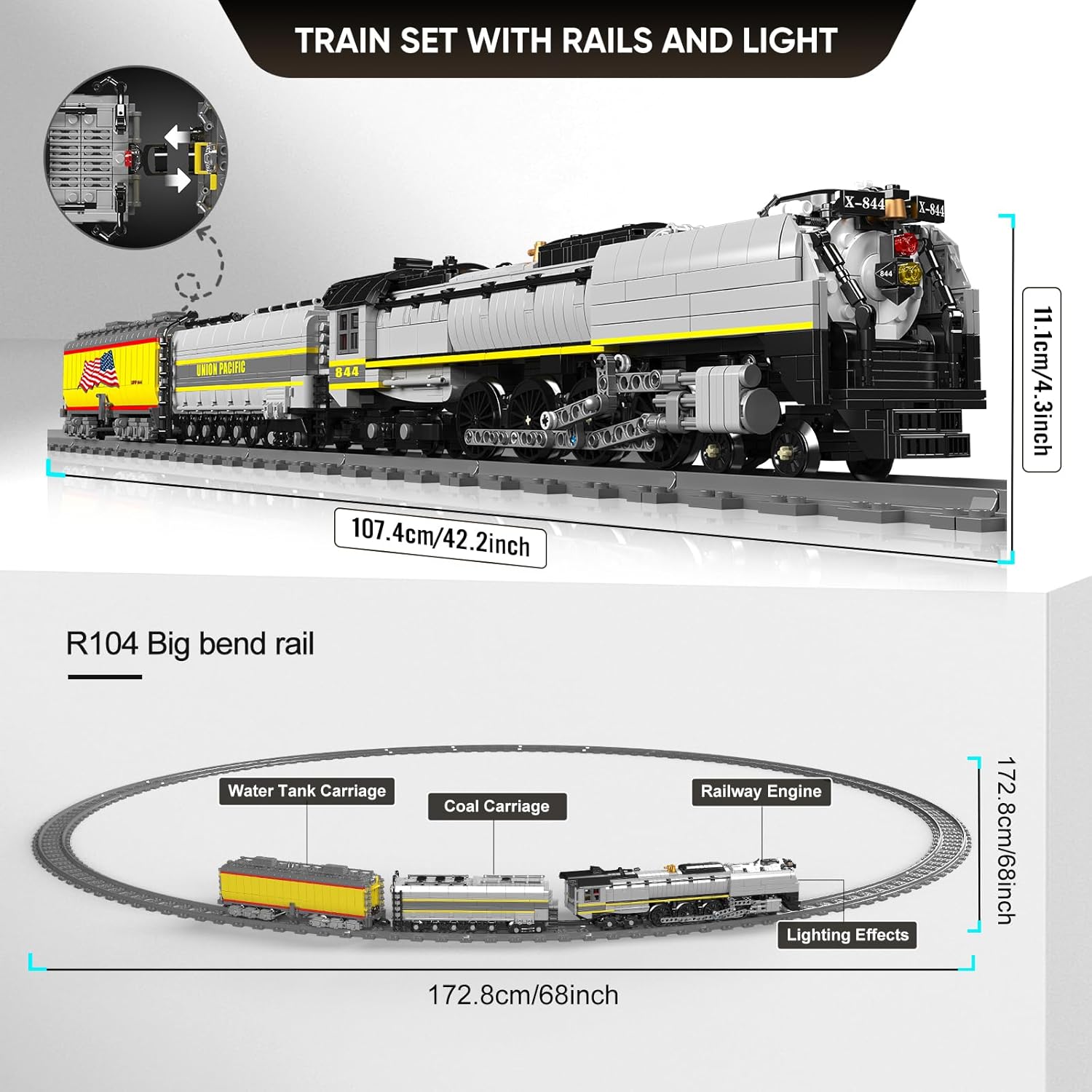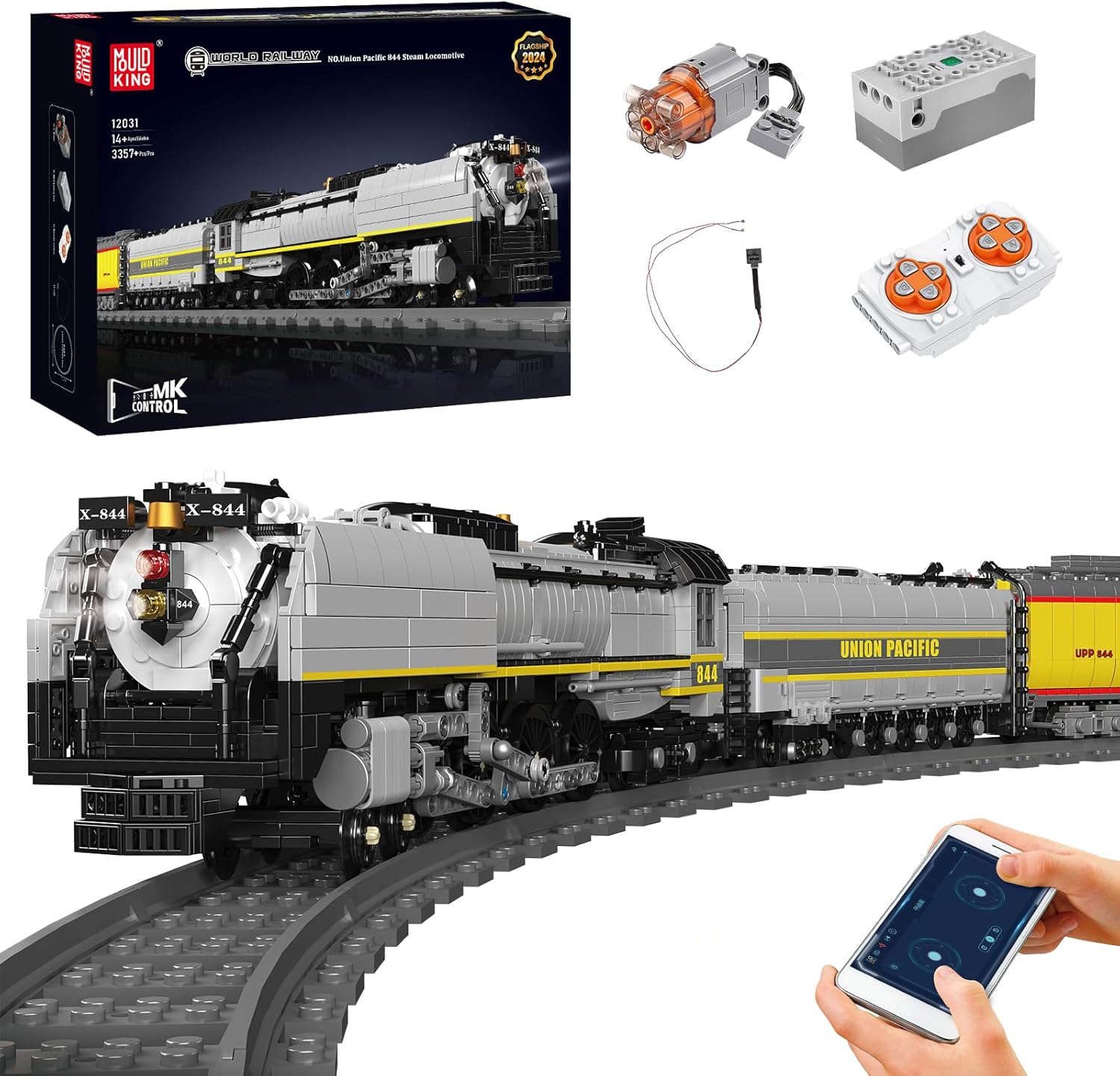 Mould King 12031 Technik Zug Eisenbahn Bauklötze Modell, 3357 Teile LED-Licht Dampflokomotive Zug Bausteine mit Fernbedienung Klemmbausteine Bauset, Geschenk für Erwachsene und Jugendliche | قیمت یورویی 129.99€