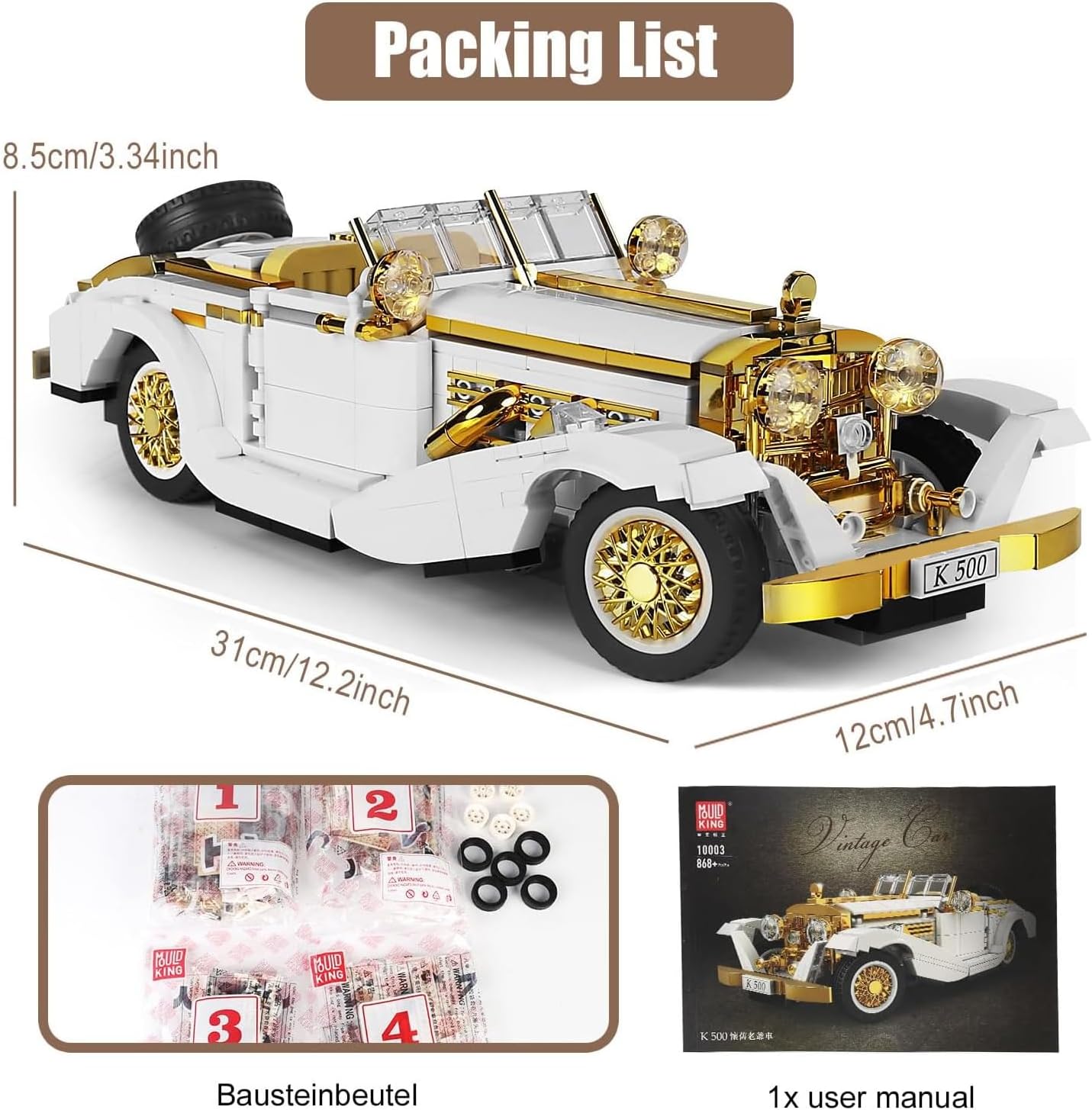 Mould King 10003 Technik Oldtimer Auto Modell Bausteine, Technik Retro Auto Modell Bauset, 868+Teile Hightech Automodell Kinder Lernspielzeug Geburtstagsgeschenk für Kinder(Ohne Motor) | قیمت یورویی 52.99€
