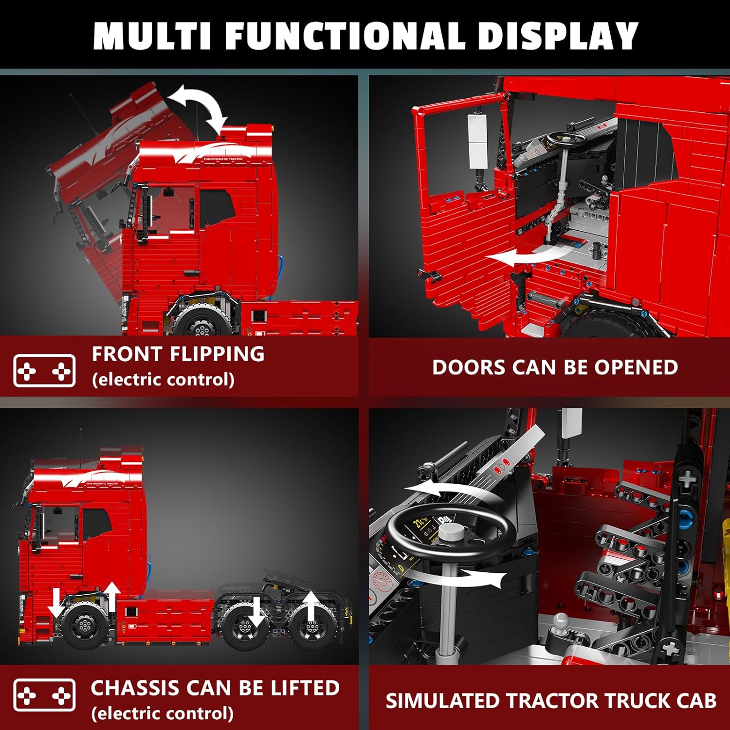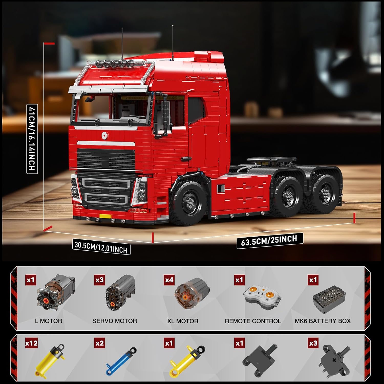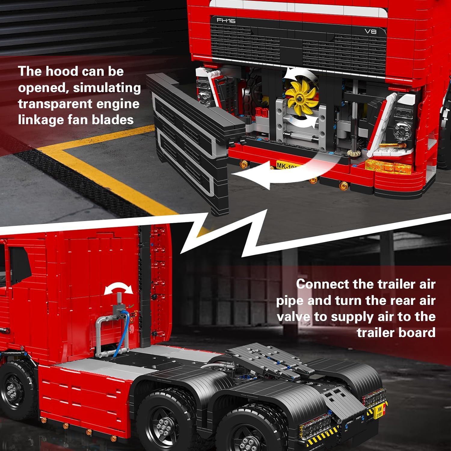 【Unabhängige Verpackung】 Pneumatisches Zugfahrzeug Baustein Kit mit 4608 pcs kleines Zubehör, alle Zubehörteile haben unterschiedlichen Montageverfahren und jedes Teil des Zubehörs wird einzeln in einem separaten Verpackungsbeutel verpackt. Gleichzeitig ist eine ausführliche Montageanleitung beigefügt, die sehr ausführlich und leicht verständlich ist. Sie können jedes Teil leicht finden und den Spaß beim Zusammenbau genießen. 【Fernsteuerung und App-Steuerung】Zur Verwendung mit dem 19015T-Anhängerbausatz. Die pneumatische Zugmaschine unterstützt 2 Modi: Fernbedienung und App-Steuerung. Beide Modi sind einfach zu bedienen. Für den App-Steuerungsmodus müssen Sie lediglich unsere App herunterladen und sich dann über Bluetooth mit Ihrem Telefon verbinden. Anschließend können Sie das Fahrzeug über Ihr Telefon steuern. 【Hoch restaurierte Fahrzeugdetails】 Die Styling-Linien sind glatt, wodurch das Erscheinungsbild des echten Autos in hohem Maße wiederhergestellt wird. Es enthält viele realistische Details und Funktionen, insbesondere sind einige kleine Details sehr schön umgesetzt. Wie die hintere Gehäuseabdeckung kann geöffnet werden, Tür lässt sich öffnen, Lenkrad kann gedreht werden und Simulation der Nabe, das Rad kann gedreht werden usw. 【Tolle Geschenkideen】 DIY Bausteine Spielzeug wurden entwickelt, um Menschcen interessante und herausfordernde Bausteinerfahrungen zu bieten. Es geeignet für Jungen und Mädchen ab 12 Jahren. Wenn Sie ein cooles Geschenk für Ihre Kinder suchen. Wie Geburtstag / Kindertag / Weihnachten / Neujahr / Ostern / Sommercamp / Schulanfang Geschenk usw.. Dieses Zugmaschine Bausteinset ist eine gute Wahl. 【Kreativität und MINT-Lernen】Exquisites Indoor-Modell: Mit den technischen Modellbausteinen des pneumatischen Traktors kommen Sie den echten Bausteinen näher als je zuvor. Dieser exquisite technische Modellbausatz wurde speziell für Fans technischer Autos mit viel Liebe zum Detail entwickelt. | قیمت یورویی : 220.15€