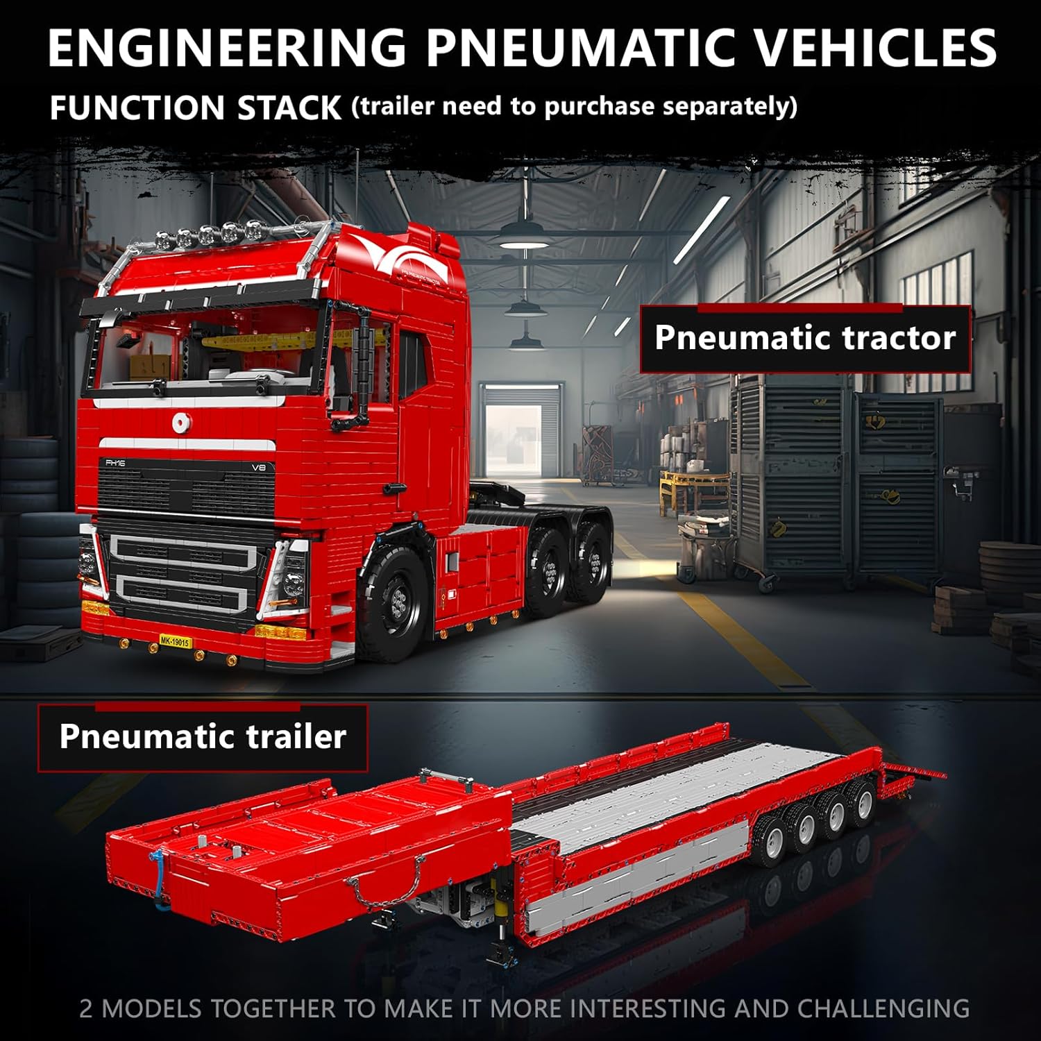 بلوک های ساختمانی کامیون تکنیکی Mold King 19015، مدل کیت تراکتور پنوماتیک بزرگ 4608 قطعه، کنترل از راه دور 2.4G و کامیون همراه با کنترل دوگانه برنامه