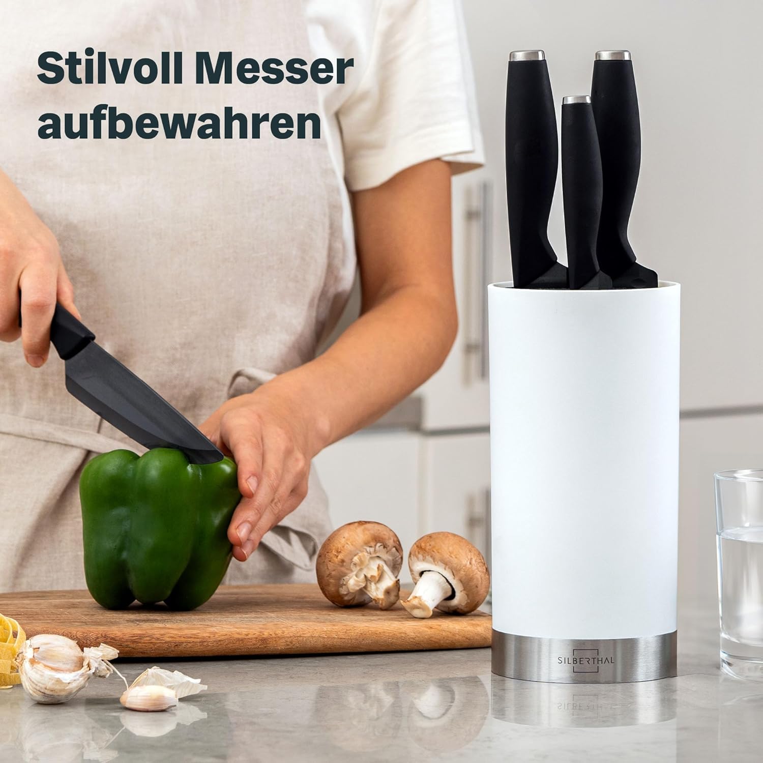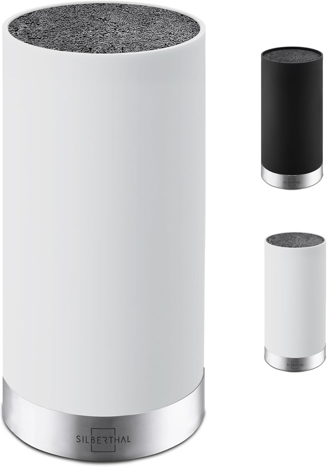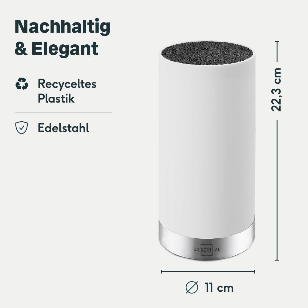 SILBERTHAL Universal Messerblock - Borsteneinsatz herausnehmbar - ohne Messer - unbestückt - Messeraufbewahrung mit Edelstahlring - Weiß | قیمت یورویی 24.95€