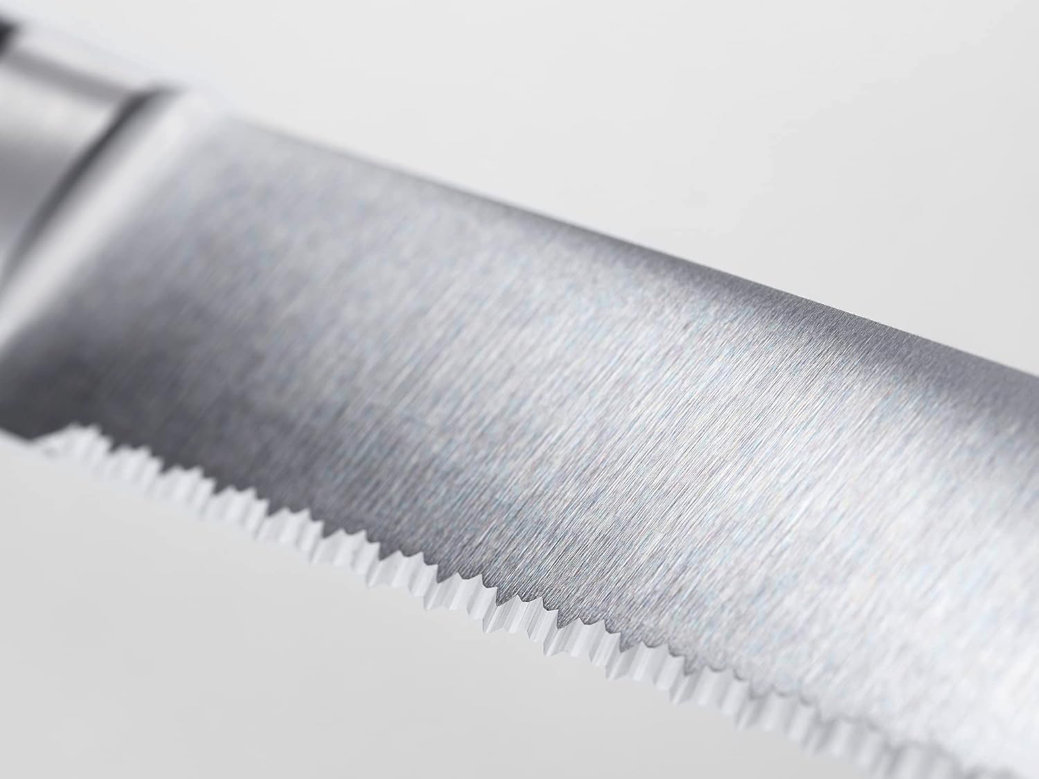 تیغه بسیار تیز، تعادل مطلوب به دلیل هندسه ویژه دو لبه و دسته چوبی نفیس و با رگههای منحصر به فرد، چاقوهای سری Ikon را به چاقوهایی زیبا و چشمنواز تبدیل کرده است - همچنین در انتخاب چاقوی سرآشپزهای حرفهای. ست چاقوی آیکون با چاقوهای حرفهای شیک تجهیزات اولیه: چاقوی سبزیجات با تیغه ۹ سانتیمتری، چاقوی برش ۱۴ سانتیمتری با لبه دندانهدار، چاقوی ژامبون ۱۶ سانتیمتری، چاقوی نان ۲۳ سانتیمتری با لبه دندانهدار، چاقوی سانتوکو با لبه توخالی ۱۷ سانتیمتری، چاقوی سرآشپز ۲۰ سانتیمتری بلوک چاقوی تزئینی طرحدار ساخته شده از چوب خاکستر قهوهای، به طور ایدهآل دستههای ظریف چاقوهای Ikon را تکمیل میکند. این چاقوها را همیشه در دسترس نگه میدارد و به طور قابل اعتمادی از تیغهها در برابر آسیب محافظت میکند. ابعاد: عرض ۳۳.۴ سانتیمتر، ارتفاع ۳۳.۸ سانتیمتر، عمق ۱۱.۵ سانتیمتر دستههای قهوهای و زیبای ساخته شده از گرنادیلای آفریقایی کاملاً در دست جا میگیرند - آنها هم از نظر بصری و هم از نظر لمسی یک ویژگی واقعاً خاص هستند. چوب جامد ضد آب، بسیار بهداشتی است و از کشت کنترلشده حاصل میشود. تیغههای ضد زنگ با سختی ۵۸ درجه راکول با استفاده از یک فرآیند تیز کردن مبتنی بر لیزر صیقل داده شده و سپس با دست به تیزی نهایی خود میرسند. چاقوها فوق العاده بادوام هستند. ووستوف - ساخت آلمان، آهنگری شده در زولینگن