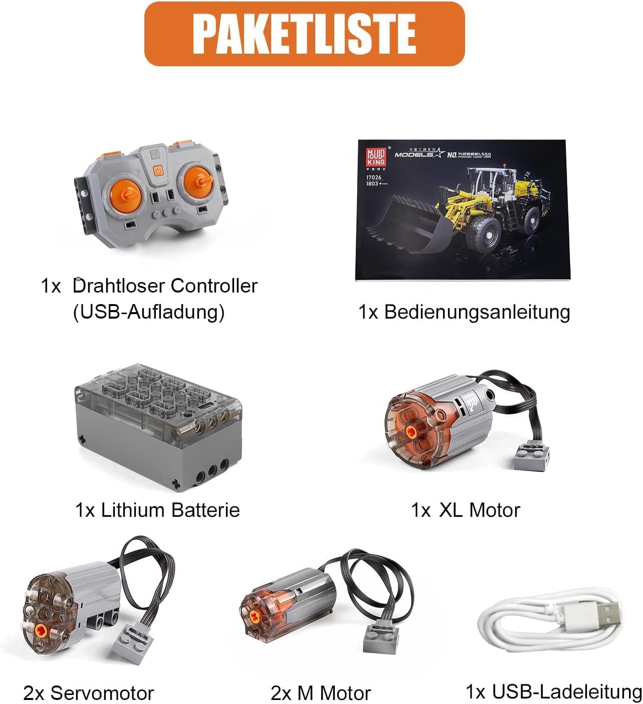Mould King 17026 - Alle Zubehörteile sind in einer unabhängigen Packtasche verpackt, die für jeden leichter zu verstehen ist. Inzwischen liegt dem Paket eine leicht verständliche Anleitung bei. Es ist für jedermann leicht zu verstehen und zu montieren. Riesiger RC Radlader - Sie können das Kranbauspielzeug mit Ihrem Mobiltelefon steuern, Sie müssen nur die App herunterladen und den Lkw über Bluetooth verbinden. USB betriebenes Design - Dieser Spielzeugbaustein verwendet einen Hochleistungsmotor, der starke Leistung liefern Traktor, sowie einen wiederaufladbaren 4,07 V / 400 mAh Lithium-Ionen-Akku, der die beste Laufzeit bietet. Einfach aufzuladen, können Sie das Bulldozer über den Stecker, die tragbare Powerbank, den Laptop usw. aufladen. Und die Fernbedienung benötigt 2 AAA-Batterien (nicht im Lieferumfang enthalten). Technik Bausatz - Mit den Technik-Produkten sind viele Mechanismen realisierbar und vorgesehen. Während des Bauens können Sie praktische Fertigkeiten ausüben, Ihre Kreativität und Phantasie fördern. Geschenkbox verpackt - Dieses Bauspielzeug mit bunter Kartonverpackung ist ein schönes Geschenk für Bau zum Geburtstag / Kindertag / Weihnachten / Neujahr. Alle Produkte meiner Firma wurden vor dem Versand streng geprüft. Bei Problemen mit Ihrem Kauf können Sie uns gerne kontaktieren! | قیمت یورویی : 139.99€