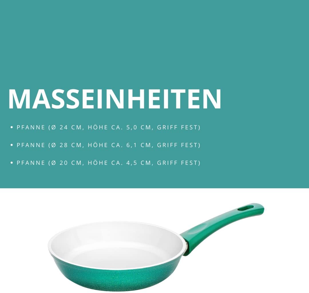 Genius Cerafit Fusion Bratpfannen-Set Induktions- Keramik-Pfannen (3 Teile) in Smaragdgrün mit kratzfester Antihaft-Beschichtung für gesundes Kochen ohne Fett und Öl, Groß | قیمت یورویی 66.94€