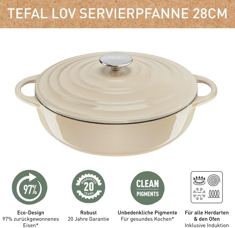 Tefal E25972 LOV Servierpfanne 28 cm | wiedergewonnenes Gusseisen | optimale Wärmespeicherung | für alle Herdarten | induktionsgeeignet | backofengeeignet bis 250°C | spülmaschinenfest | Beige Beige Servierpfanne 28 cm | قیمت یورویی 194.16€