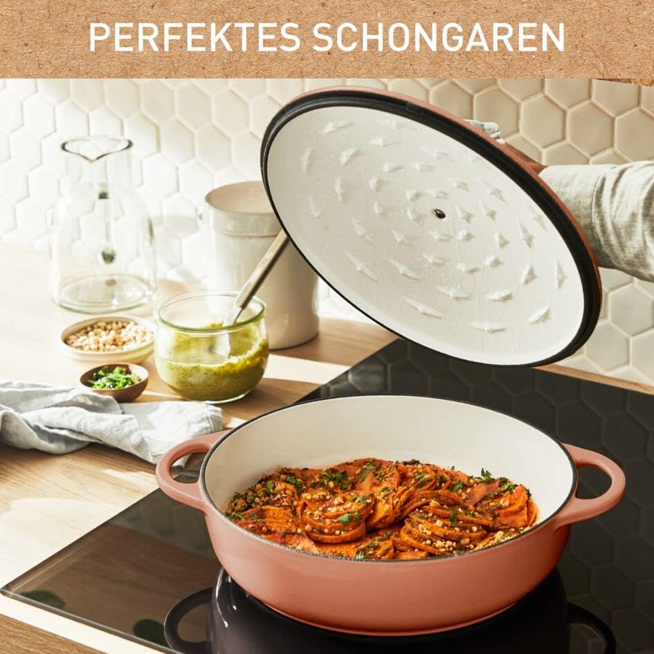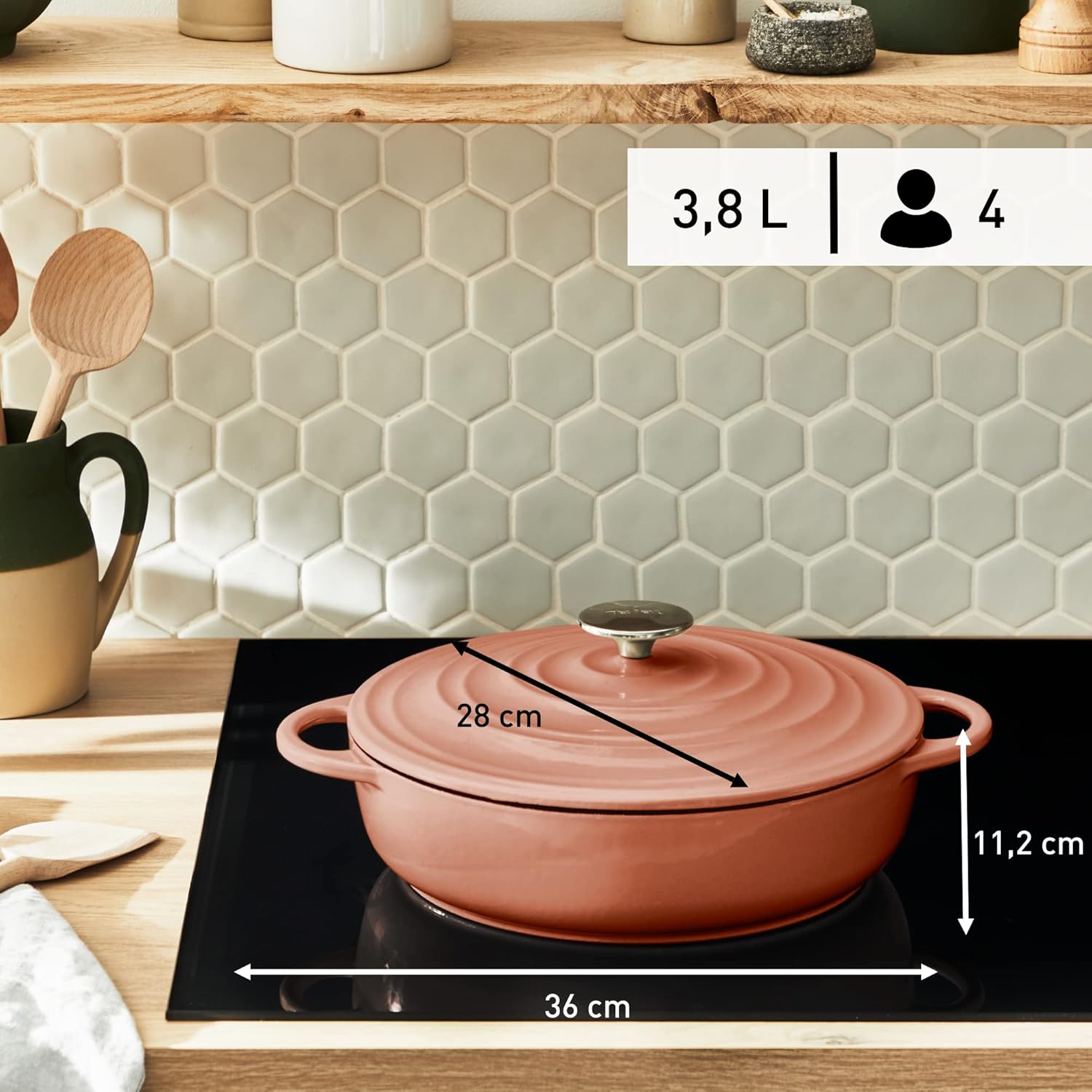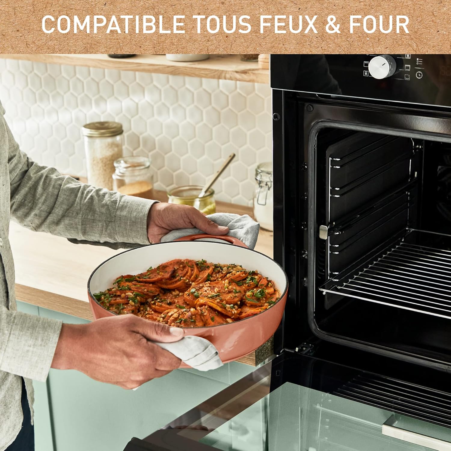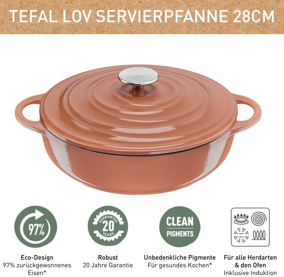 Tefal E26072 LOV Servierpfanne 28 cm | wiedergewonnenes Gusseisen | optimale Wärmespeicherung | für alle Herdarten | induktionsgeeignet | backofengeeignet bis 250°C | spülmaschinenfest | Terracotta | قیمت یورویی 159.94€