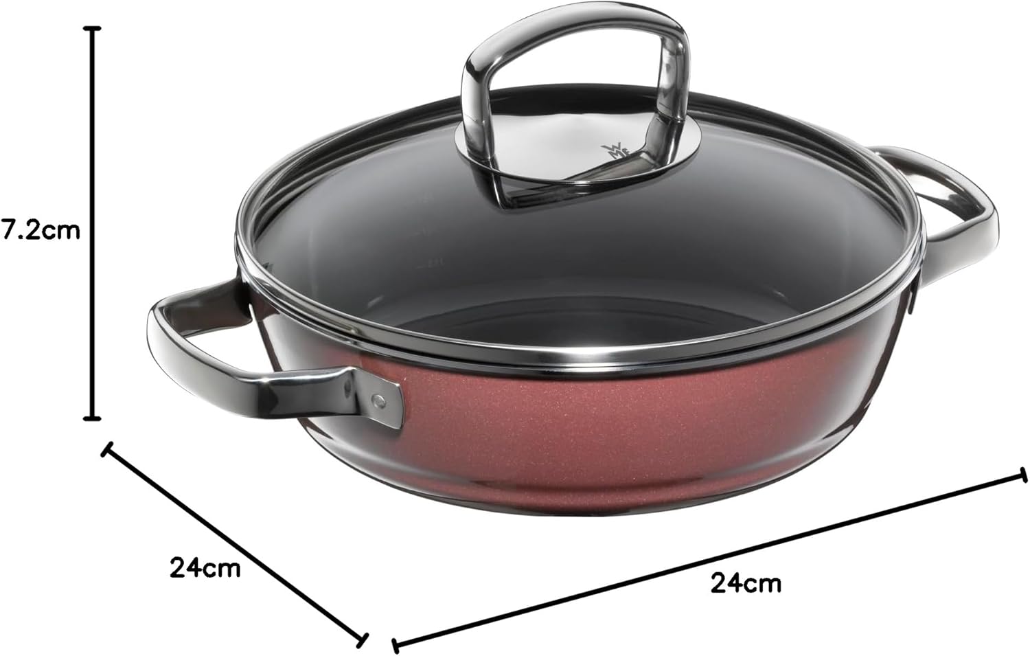 تابه چدنی معدنی WMF Fusiontec 24 سانتیمتر، پخت عالی، پخت یکنواخت، ضد خش، تمیز کردن آسان، ساخت آلمان، رز کوارتز، قرمز 0515845290