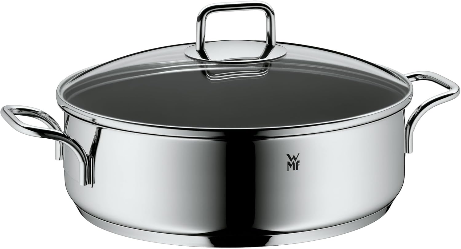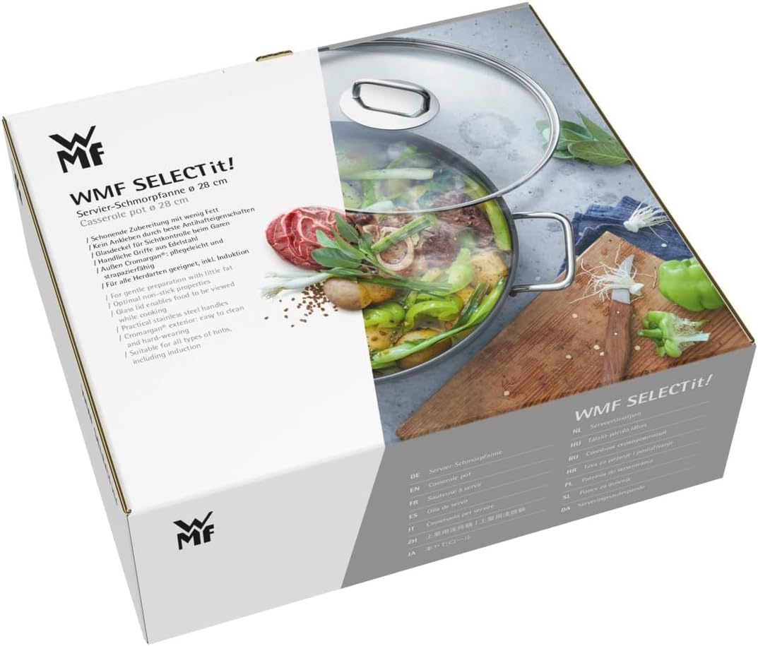WMF Schmorpfanne 28 cm hoher Rand, Bräter Induktion, Schmortopf mit Deckel 5,0l, Pfanne Induktion, Cromargan Edelstahl beschichtet, backofengeeignet, antihaftbeschichtet, hoher Rand | قیمت یورویی 59.9€