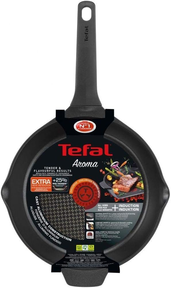 Tefal Aroma Kochgeschirr: intelligentes Design, leckere Ergebnisse,für alle Herdarten geeignet, einschließlich Induktion Hervorragende Wärmespeicherung: Die elegante Form aus gegossenem Aluminium und der extrastarke Boden sorgen für eine hohe Wärmespeicherung und ein zartes, geschmackvolles Kochergebnis Titanium Antihaft-Versiegelung: einfach verwendbare und leicht zu reinigende Oberfläche Thermo-Spot Technologie für perfektes Anbraten Ausgießhilfen: speziell entwickelte Ausgießhilfen zum präzisen und sauberen Servieren Gegengriff: für dynamisches und kreatives Kochen. Backofengeeignet: bis 175°C Umweltfreundlich: recycelbare Produkte mit sicherer Antihaftversiegelung (frei von PFOA, Blei und Cadmium) | قیمت یورویی : 53.63€