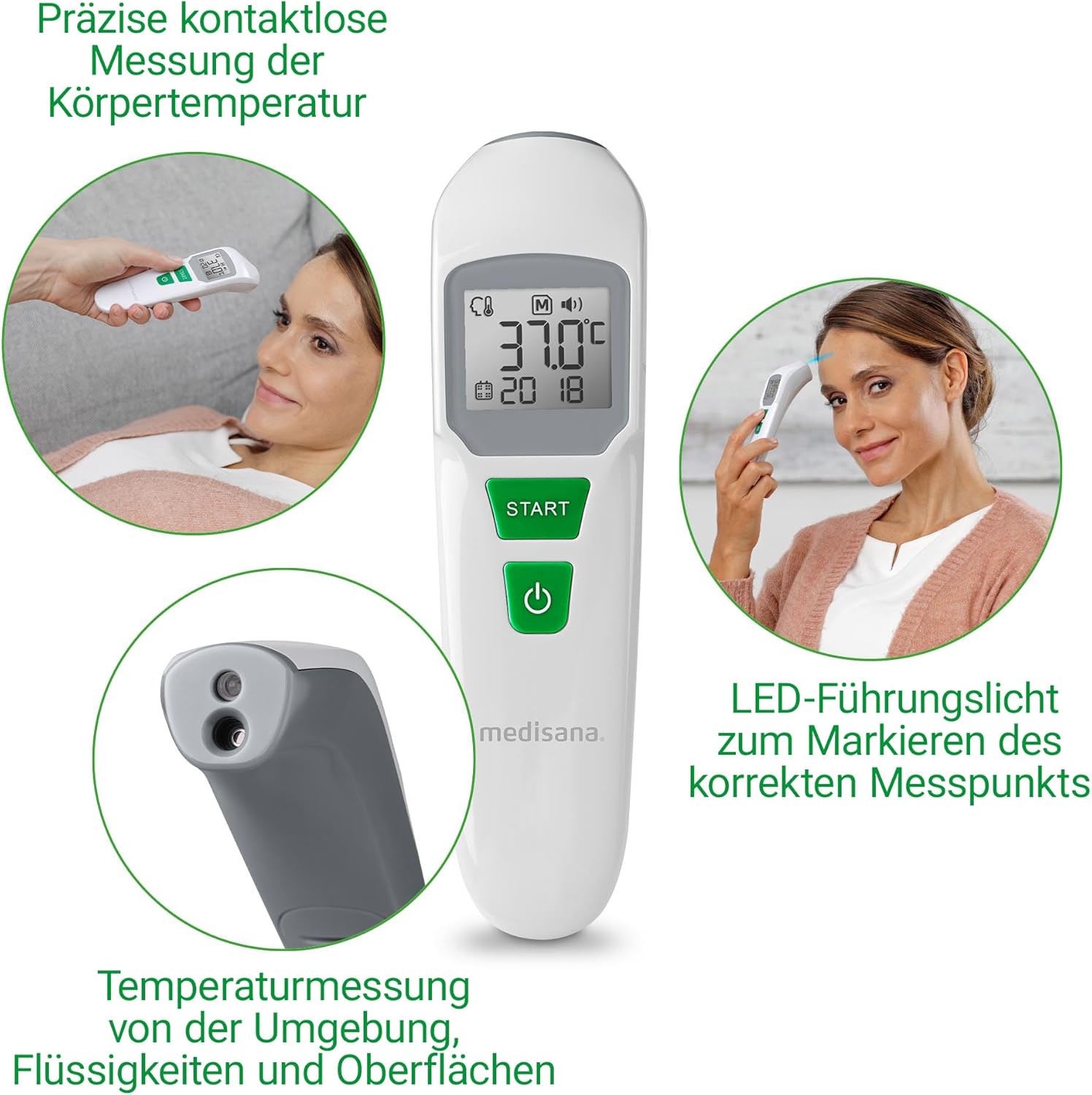 medisana TM 762 digitales Stirnthermometer Fieberthermometer für Babys, Kinder und Erwachsene mit visuellem Fieberalarm, Speicherfunktion und Messung von Flüssigkeiten | قیمت یورویی 33.99€