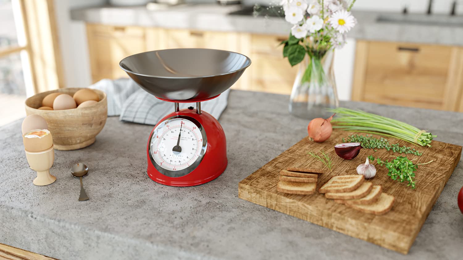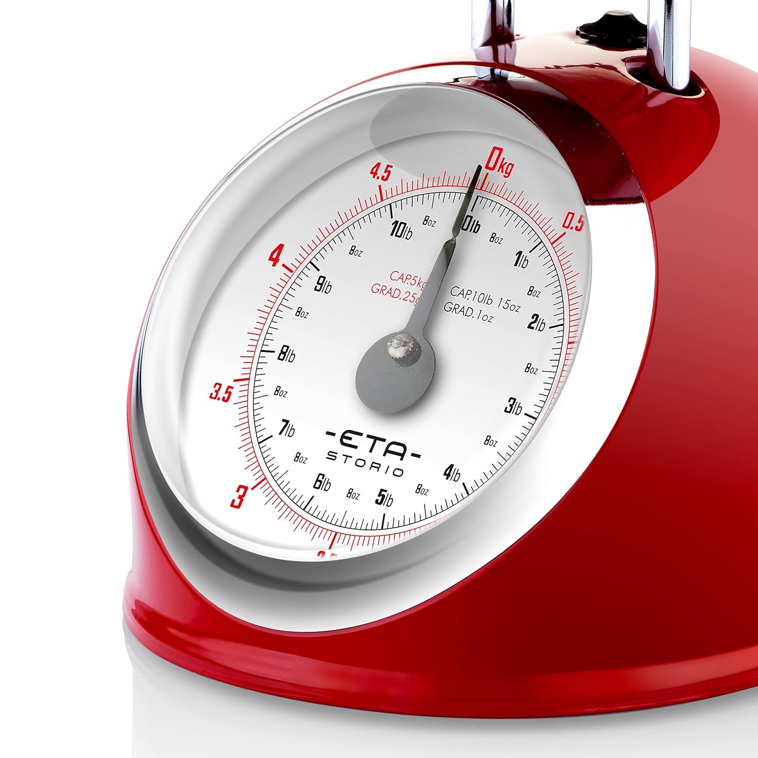 ETA Küchenwaage I Storio I Analoge Retro Waage im Ganzmetall Design I 2 Liter Edelstahlschale I max. 5kg I Rot | قیمت یورویی 31.08€