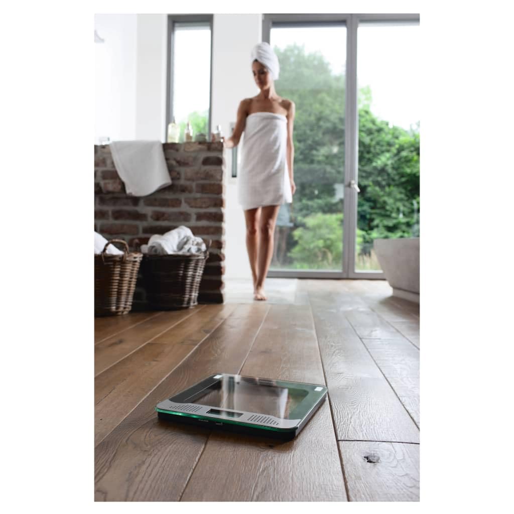 خروجی صدا: ترازوی بدن Medisana PS 416 دارای خروجی صدا به چهار زبان مختلف است. این ویژگی، آن را به ابزاری عالی، به ویژه برای افراد مسن، کم بینا یا نابینا، تبدیل می‌کند. عملکرد راحت با پا گذاشتن روی ترازو: ترازوی حمام PS 416 با قدم گذاشتن روی سطح پله مانند ساخته شده از شیشه نشکن با ضخامت شش میلی‌متر روشن می‌شود. عملکرد: می‌توانید ترازوی شخصی PS 416 را بین واحدهای کیلوگرم، پوند یا استاندارد تغییر دهید. علاوه بر این، دستگاه به نشانگر اضافه بار و نشانگر کمبود باتری مجهز است. صرفه‌جویی در مصرف انرژی: عملکرد خاموش شدن خودکار یکپارچه تضمین می‌کند که ترازوی حمام پس از استفاده به طور خودکار خاموش می‌شود تا در مصرف انرژی صرفه‌جویی شود. دستورالعمل استفاده: لطفاً فقط پابرهنه روی ترازو قدم بگذارید و مطمئن شوید که هر چهار الکترود لمس شده‌اند. یک کف صاف و سفت توصیه می‌شود، زیرا در غیر این صورت دقت اندازه‌گیری تحت تأثیر قرار خواهد گرفت.