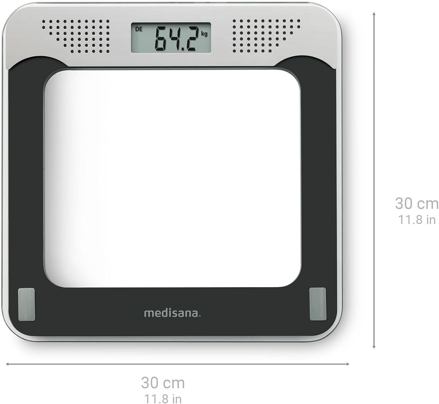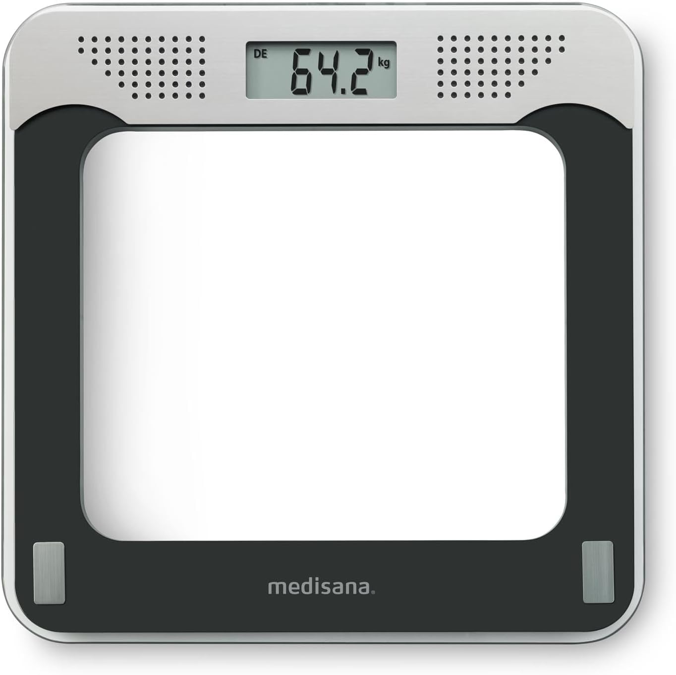 medisana PS 425 Sprechende Personenwaage, Präzise digitale Waage aus Glas, 4 Sprachen, Integrierte Abschaltautomatik, Schwarz / Grau, bis 180 kg | قیمت یورویی 22.22€