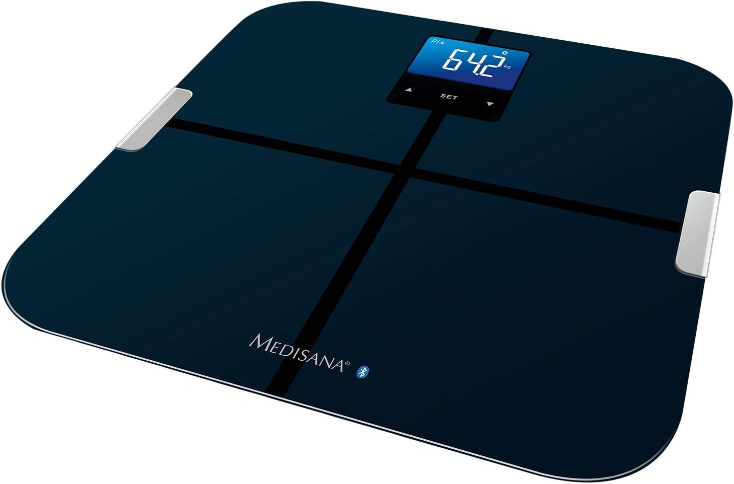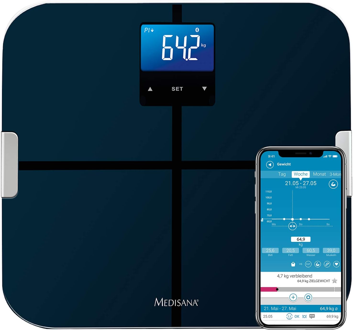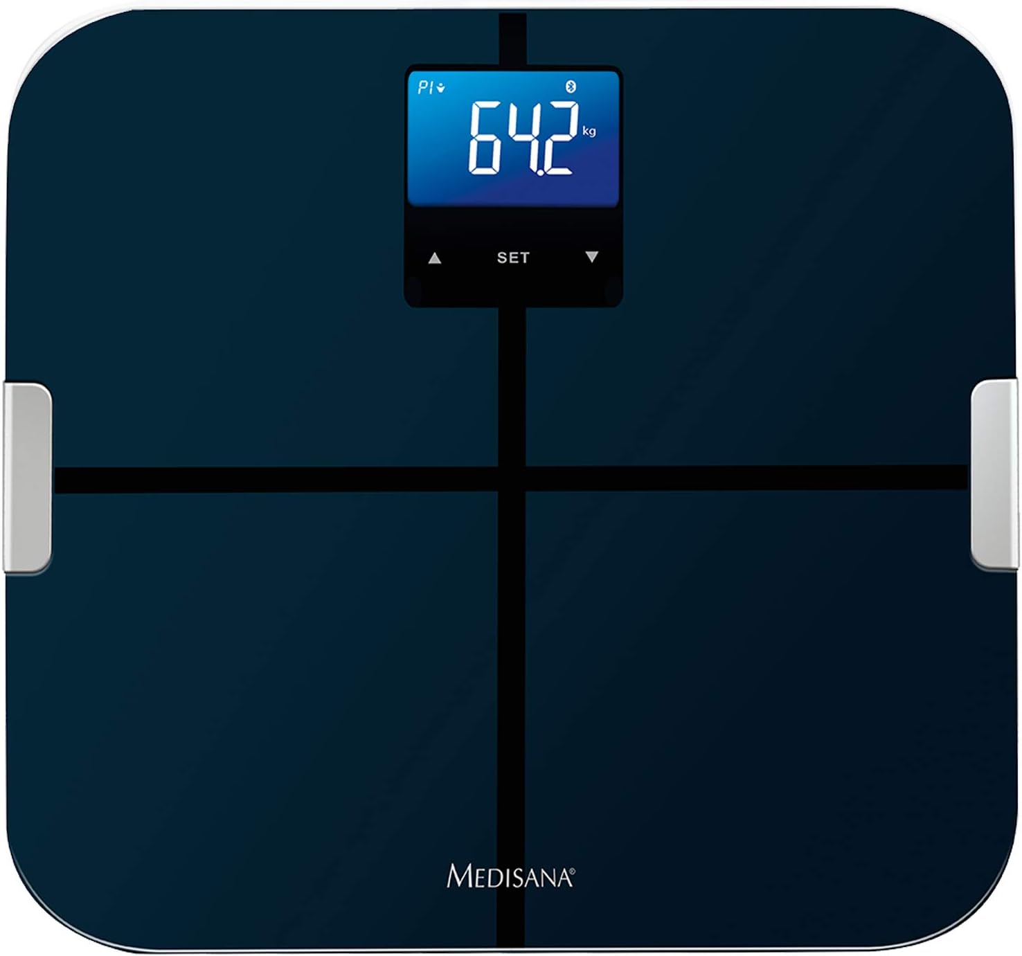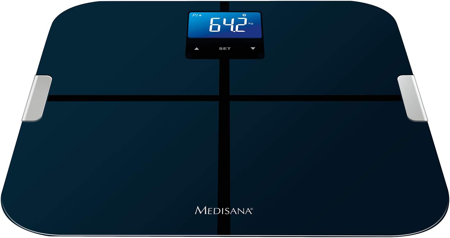 medisana BS 440 digitale Körperanalysewaage, Personenwaage mit praktischer App, Körperfettwaage, Messung von Körperfett, Körperwasser, Muskelmasse & Knochengewicht, Bis 180 kg, Schwarz Standard Edition | قیمت یورویی 44.38€