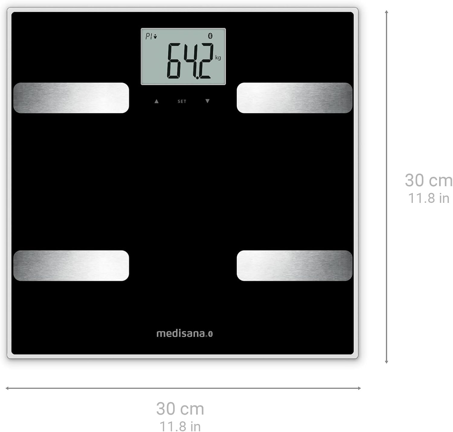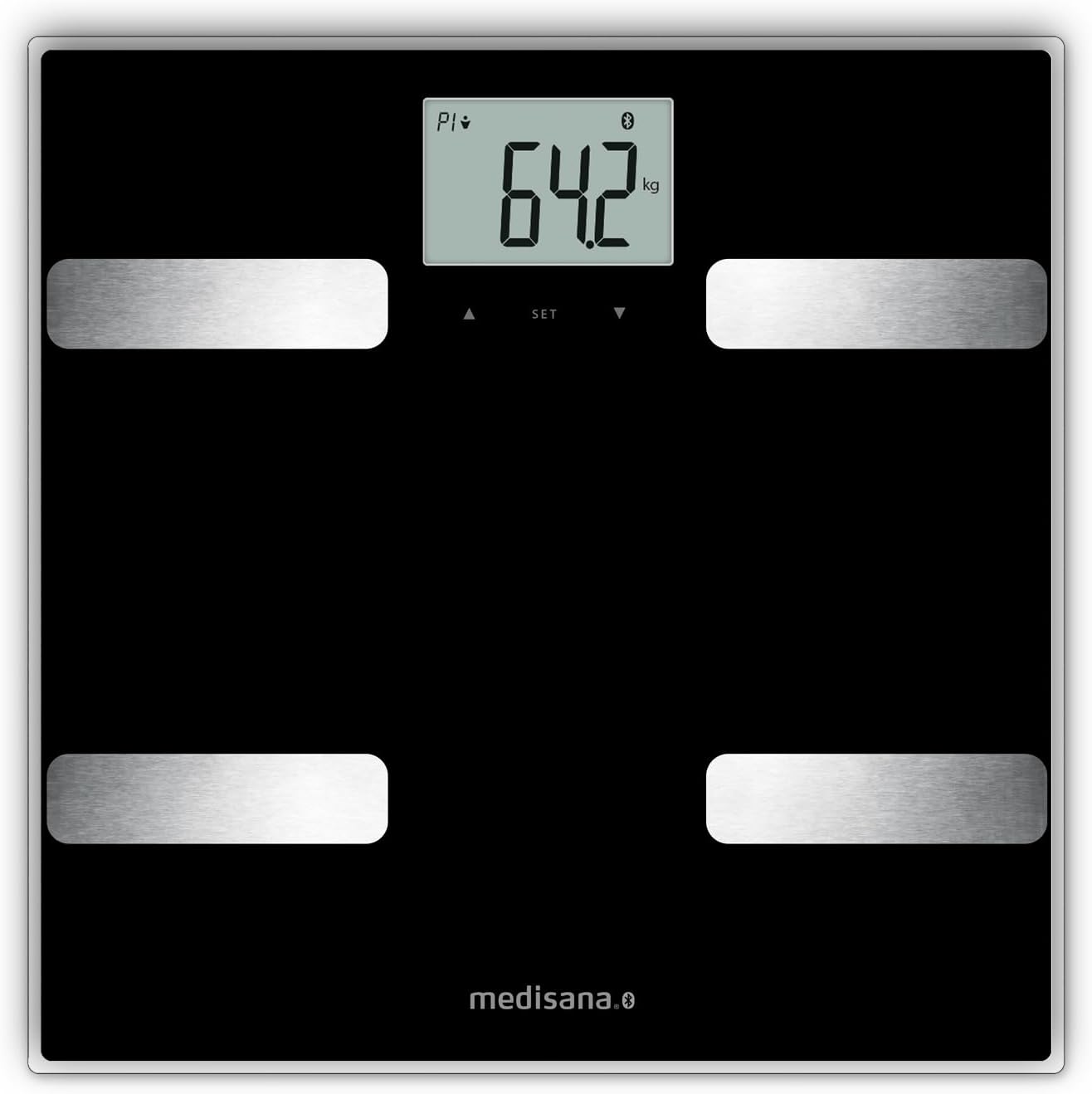 medisana BS A41 digitale Körperanalysewaage, Personenwaage mit praktischer App, Körperfettwaage, Messung von Körperfett, Körperwasser, Muskelmasse & Knochengewicht, Bis 180 kg, Schwarz / Silber | قیمت یورویی 39.99€