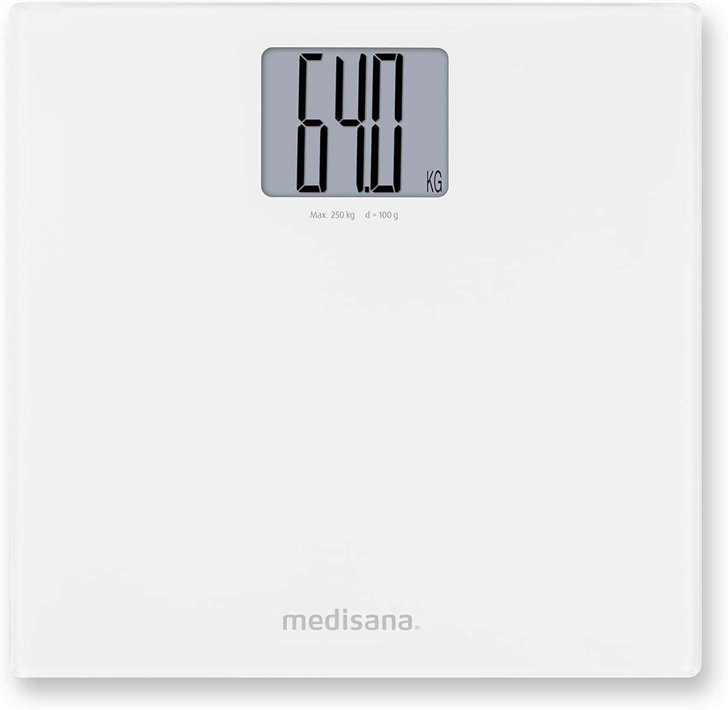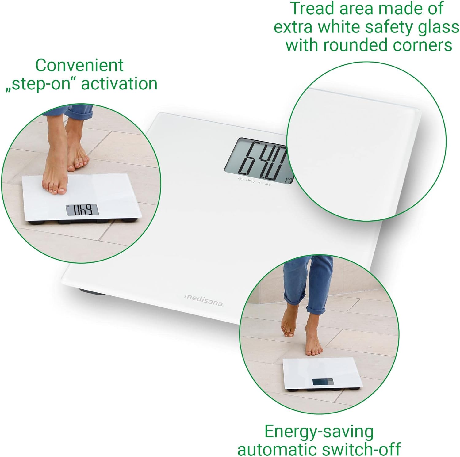 medisana PS 470 Digitale XL Personenwaage, Präzise Waage aus Glas, Extra hohe Tragkraft, Integrierte Abschaltautomatik, Weiß, bis 250 kg | قیمت یورویی 29.99€