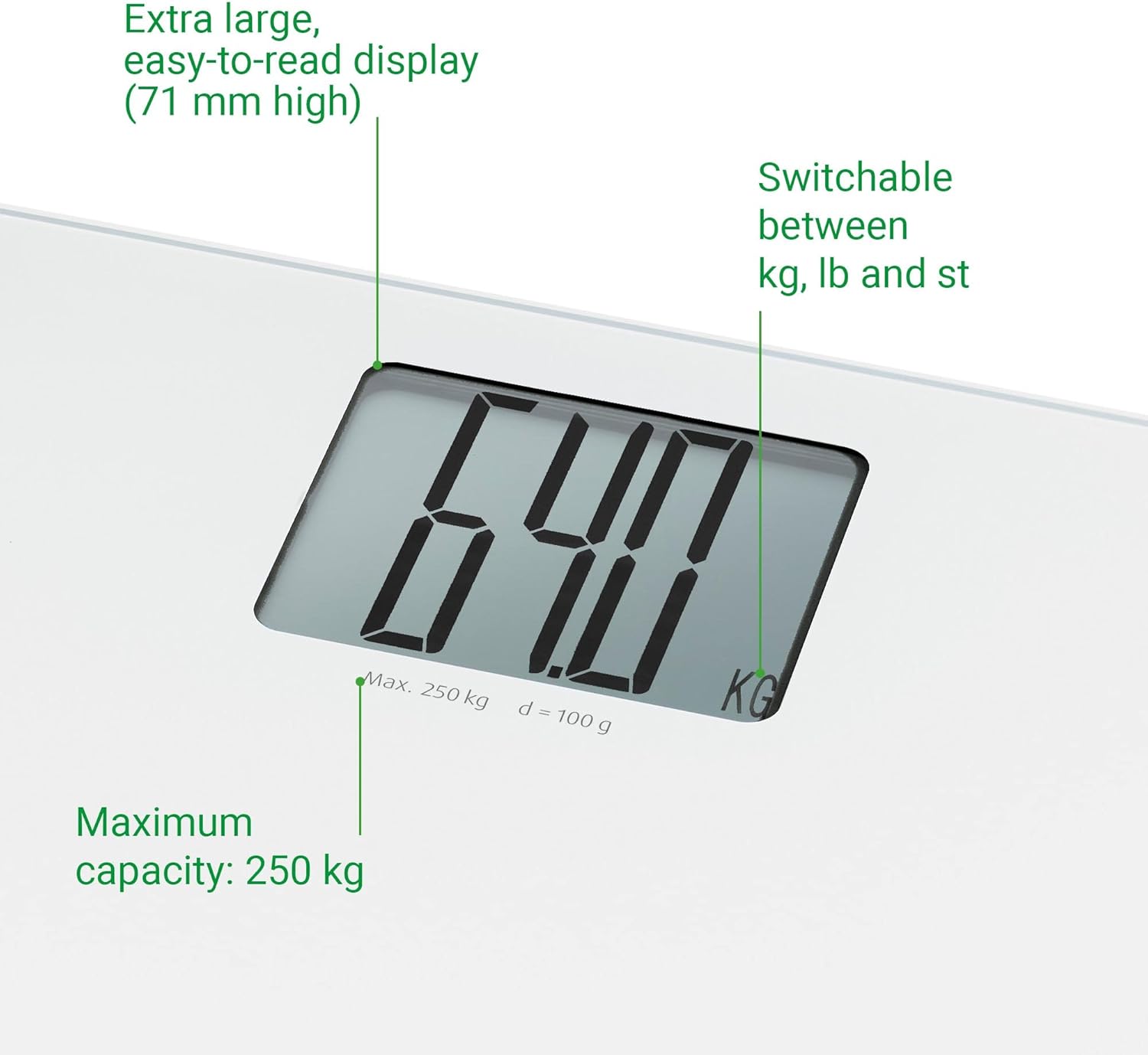 ترازوی دیجیتال شخصی مدیسانا PS 470 XL، ترازوی شیشهای دقیق، ظرفیت بار بسیار بالا، خاموش شدن خودکار یکپارچه، سفید، تا 250 کیلوگرم