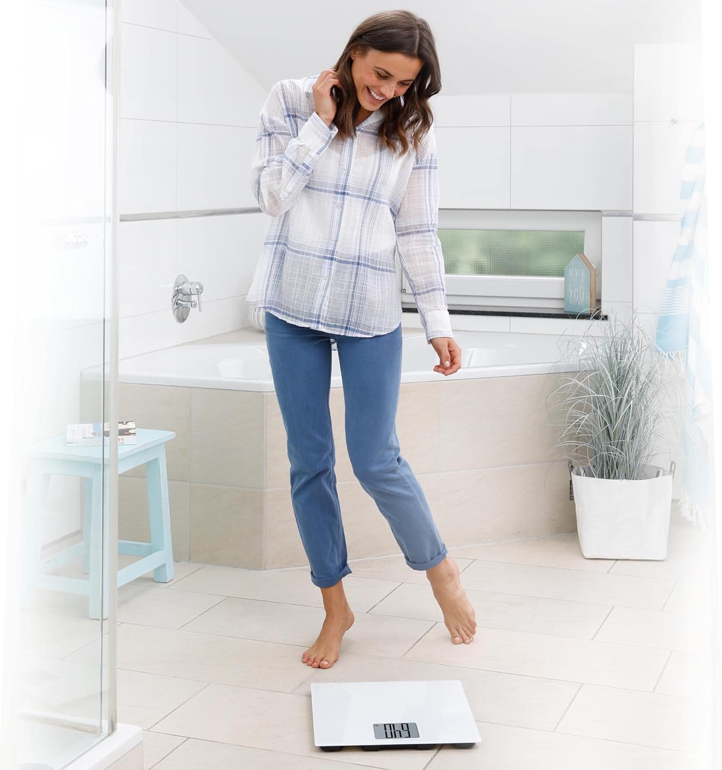 Präzise Messung: Behalten Sie immer die Kontrolle auf dem Weg zum Wunschgewicht. Die Personenwaage bestimmt das Gewicht präzise bis zu 180 Kilogramm Extra-Groß: Dank ihres extra großem LCD-Display lassen sich die angezeigten Werte problemlos ablesen Step-On: Die Personenwaage schaltet sich automatisch ein, wenn Sie sich auf die Trittfläche aus 6 mm. starkem Sicherheitsglas stellen Funktional: Sie können die Badezimmerwaage zwischen KG, LB oder ST umschalten. Zusätzlich ist das Gerät mit einer Überlastungsanzeige und einer Batteriewechselanzeige ausgestattet Nutzungshinweis: Empfehlenswert ist ein flacher und harter Boden um das Messergebnis nicht zu beeinträchtigen | قیمت یورویی : 29.99€