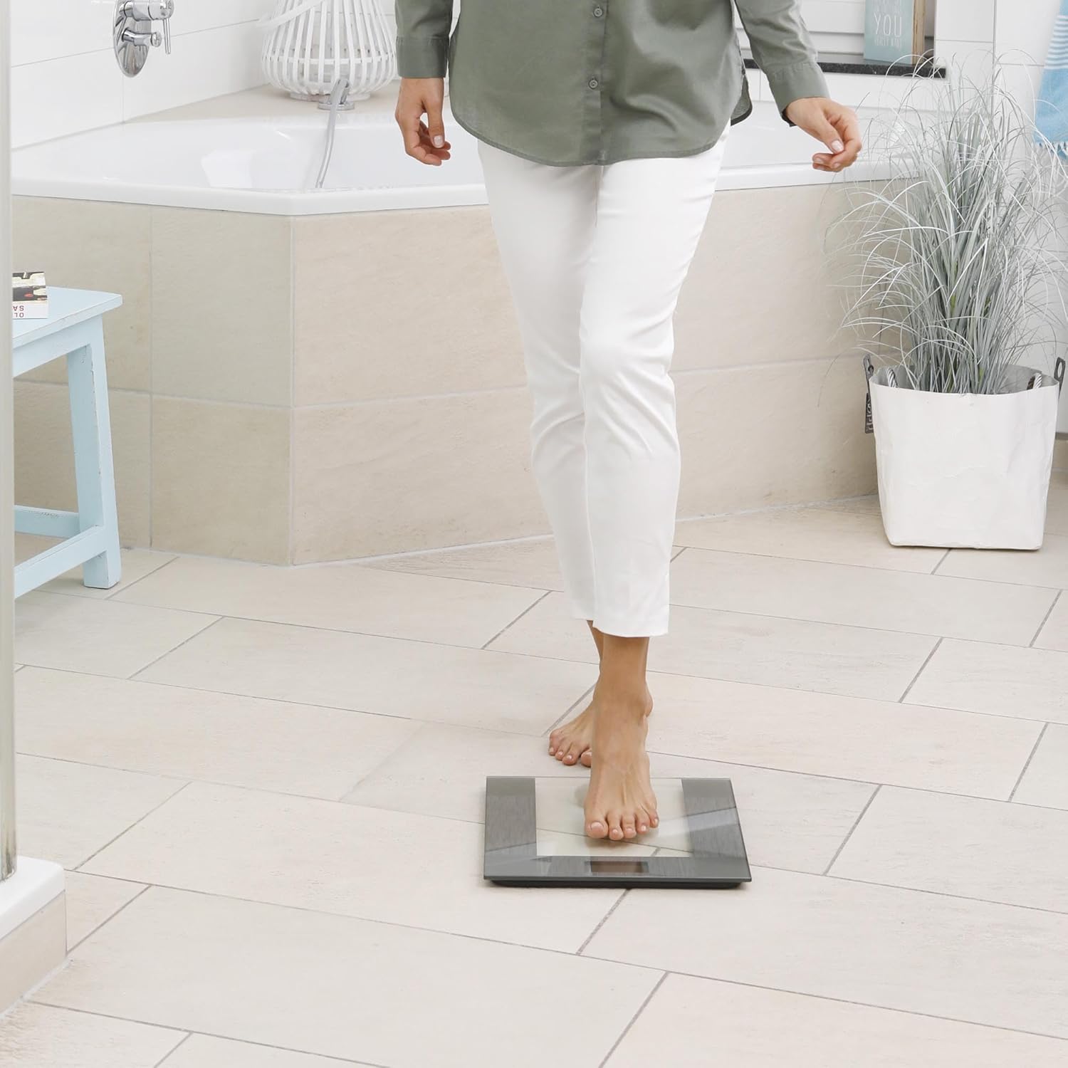 عملکرد راحت با پا گذاشتن روی ترازو: ترازوی حمام PS 400 با قدم گذاشتن روی سطح پله مانند ساخته شده از شیشه نشکن با ضخامت شش میلی‌متر روشن می‌شود. صرفه‌جویی در مصرف انرژی: عملکرد خاموش شدن خودکار یکپارچه تضمین می‌کند که ترازوی حمام پس از استفاده به طور خودکار خاموش می‌شود تا در مصرف انرژی صرفه‌جویی شود. عملکرد: ترازوی شخصی PS 425 را می‌توان بین واحدهای کیلوگرم، پوند یا استاندارد تغییر داد. علاوه بر این، دستگاه به نشانگر اضافه بار و نشانگر کمبود باتری مجهز است. مسطح و دقیق: چهار حسگر کرنش‌سنج داخلی با دقت بالا، اندازه‌گیری‌های وزن بسیار دقیقی را تضمین می‌کنند. صفحه نمایش LCD بزرگ، خواندن نتایج را آسان می‌کند. دستورالعمل استفاده: لطفاً فقط پابرهنه روی ترازو قدم بگذارید و مطمئن شوید که هر چهار الکترود لمس شده‌اند. یک کف صاف و سفت توصیه می‌شود، زیرا در غیر این صورت دقت اندازه‌گیری تحت تأثیر قرار خواهد گرفت.